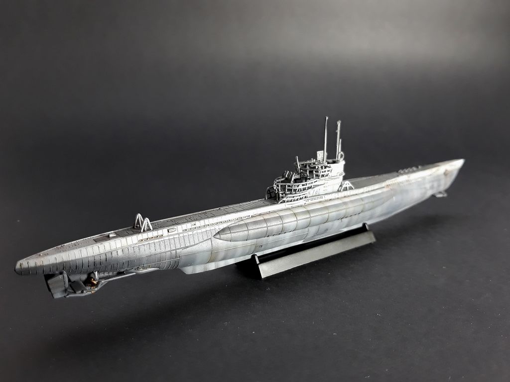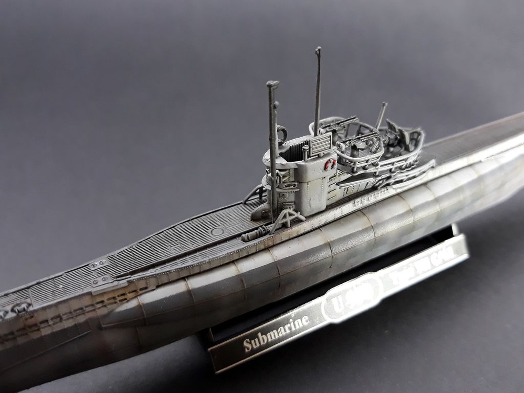 Добрый день всем. Закончил свою очередную модель. Начитавшись книг Эдуарда Овечкина (кстати, очень советую) увлекся темой подводных лодок. Проба пера выпала на немецкую лодку времен Второй мировой войны Type VII C/41. Вообще лодки типа Type VII это самый крупносерийный тип подводных лодок в истории. Настряпали их очень много и разных модификаций. Сама модель очень приятная в сборке, замечательная цветная инструкция. В общем, для начинающих, считаю, то что нужно) Здорово смотрится на полке книжного шкафа Красил красками Mr.Hobby и Tamiya.