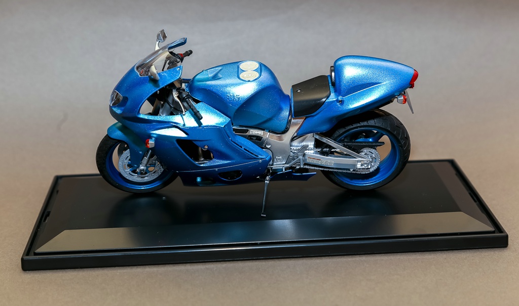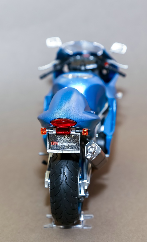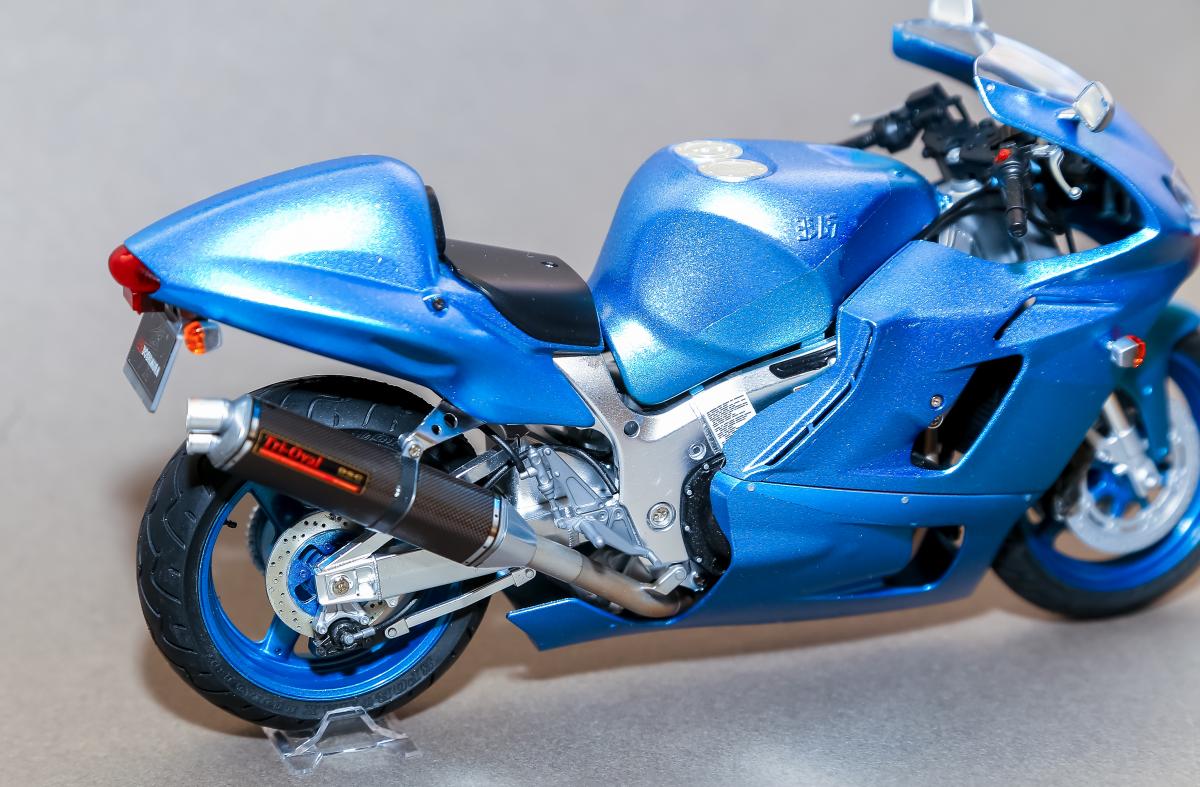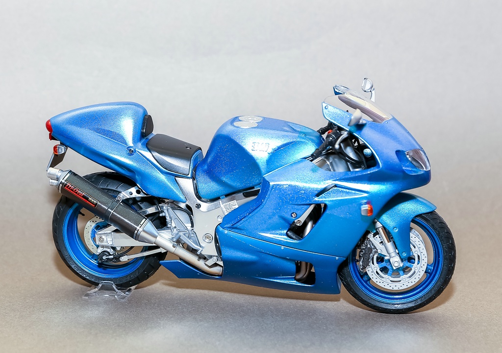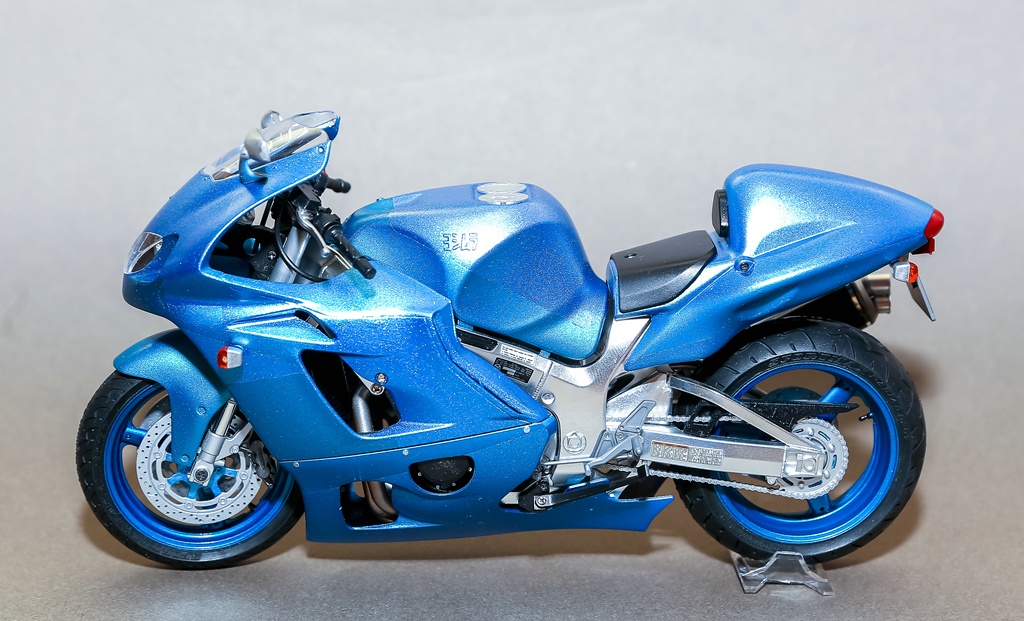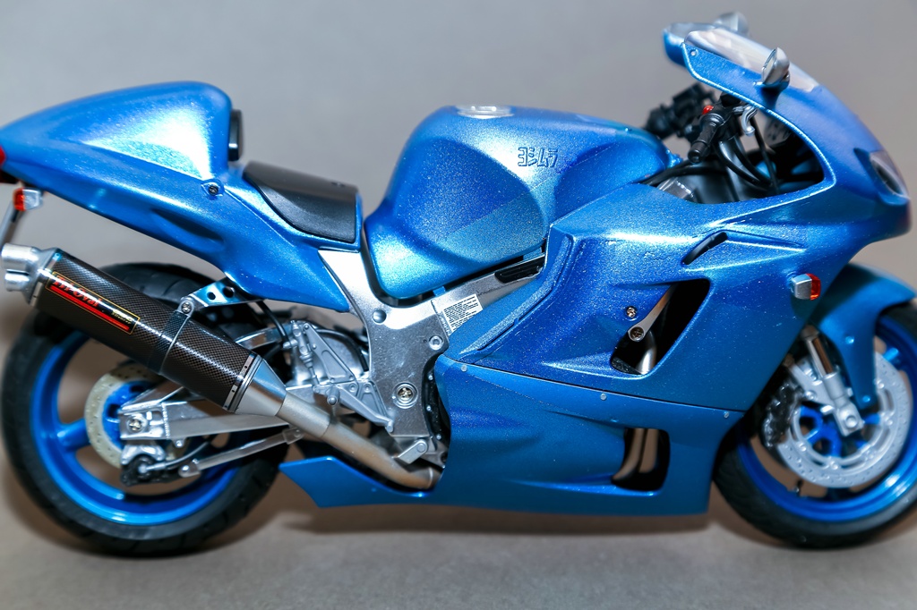 Представляю вашему внимаю модель не типичного масштаба для меня. Спортивный мотоцикл Suzuki Yoshimura Hayabusa X-1 от известного производителя моделей Tamiya в масштабе 1/12. Что сказать по сборке, "Тамия" как обычно на высоте - все хорошо стыкуется и собирается. Модель при желании можно и не красить - все детали выполнены в необходимом цвете. Единственное что мне не понравилось, это сборка переднего крыла - шов виден даже после грунтовки и зачистки. Окраска - акрил "Тамия". Цвет выбрал исходя из пожеланий конечного владельца. Модель будет подарена знакомому байкеру в день рождения.