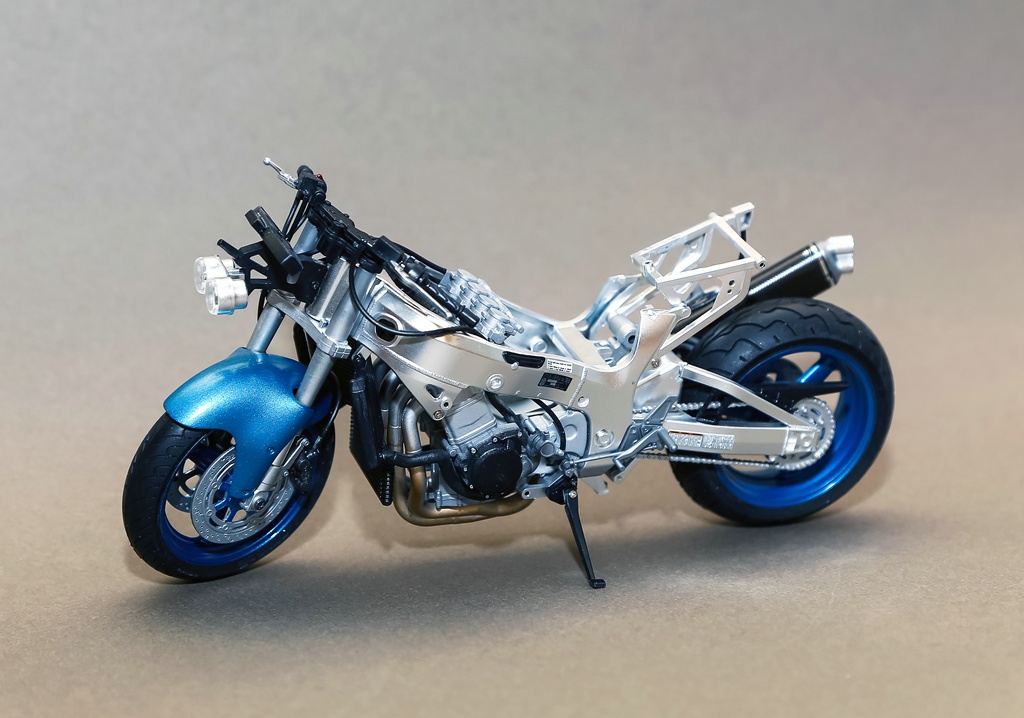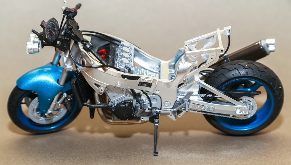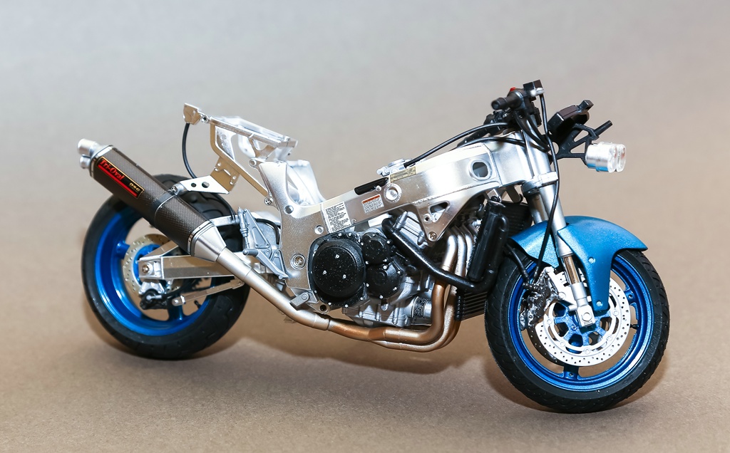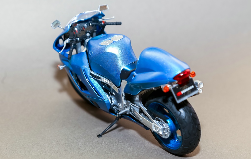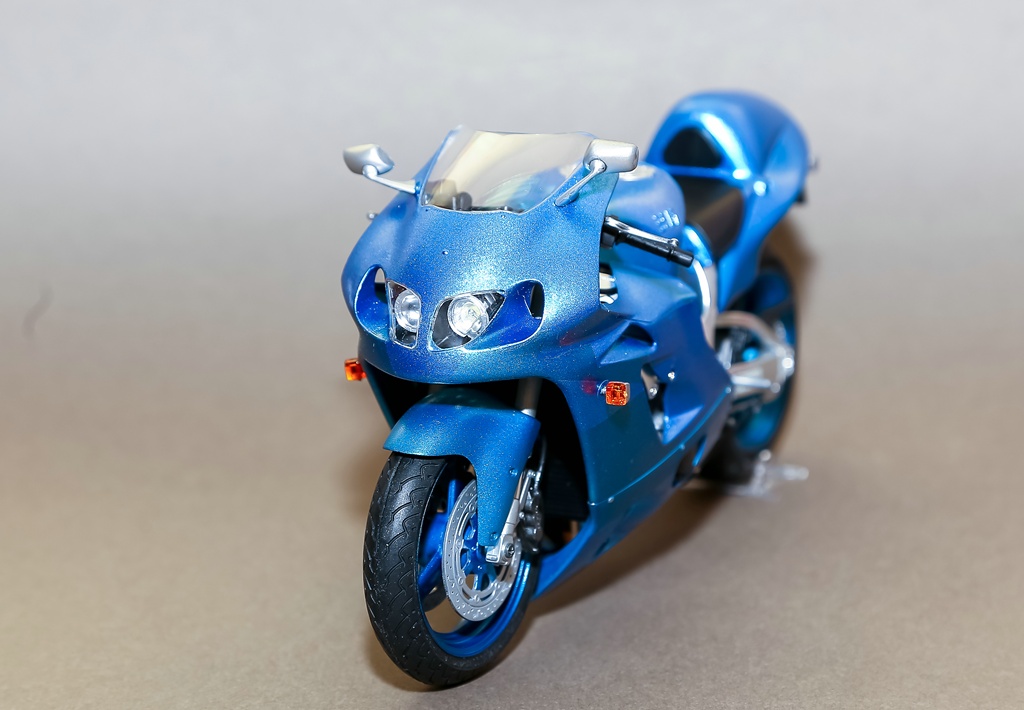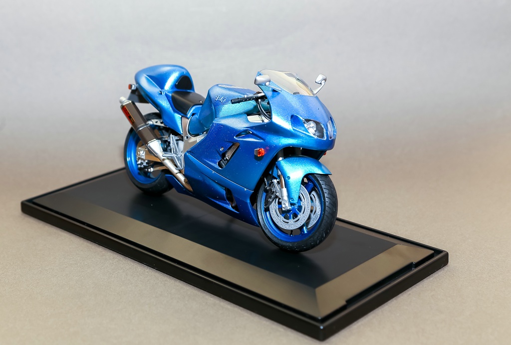 Представляю вашему внимаю модель не типичного масштаба для меня. Спортивный мотоцикл Suzuki Yoshimura Hayabusa X-1 от известного производителя моделей Tamiya в масштабе 1/12. Что сказать по сборке, "Тамия" как обычно на высоте - все хорошо стыкуется и собирается. Модель при желании можно и не красить - все детали выполнены в необходимом цвете. Единственное что мне не понравилось, это сборка переднего крыла - шов виден даже после грунтовки и зачистки. Окраска - акрил "Тамия". Цвет выбрал исходя из пожеланий конечного владельца. Модель будет подарена знакомому байкеру в день рождения.