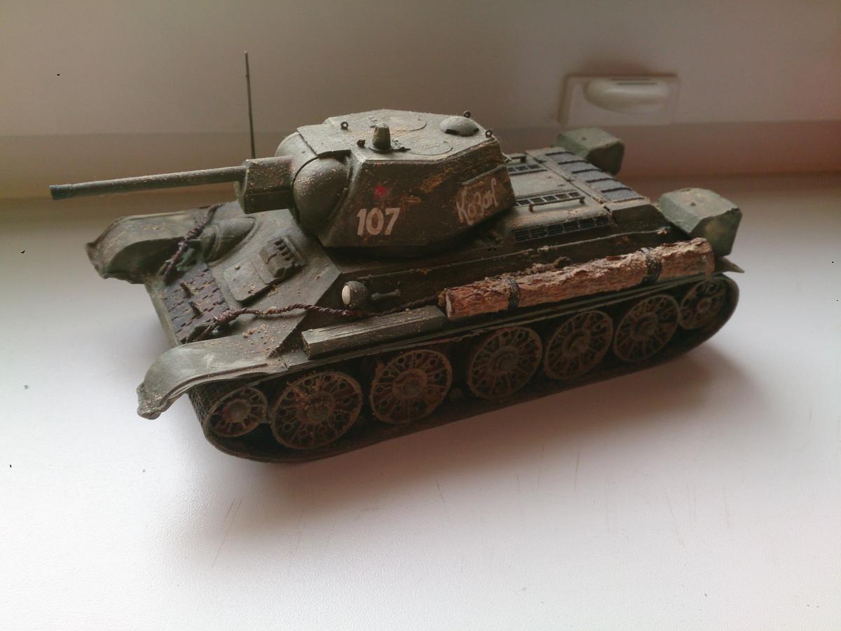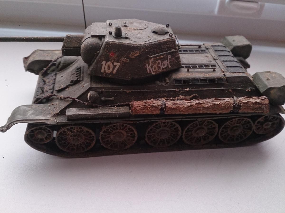 Выставляю на обсуждение одну из первых своих моделей. В моделизме самоучка) Использовал модель т-34/76 ZVEZDA и подручные материалы, акрил производства ZVEZDA. -