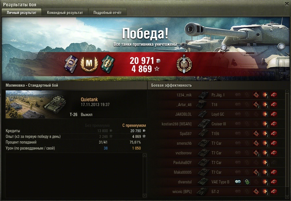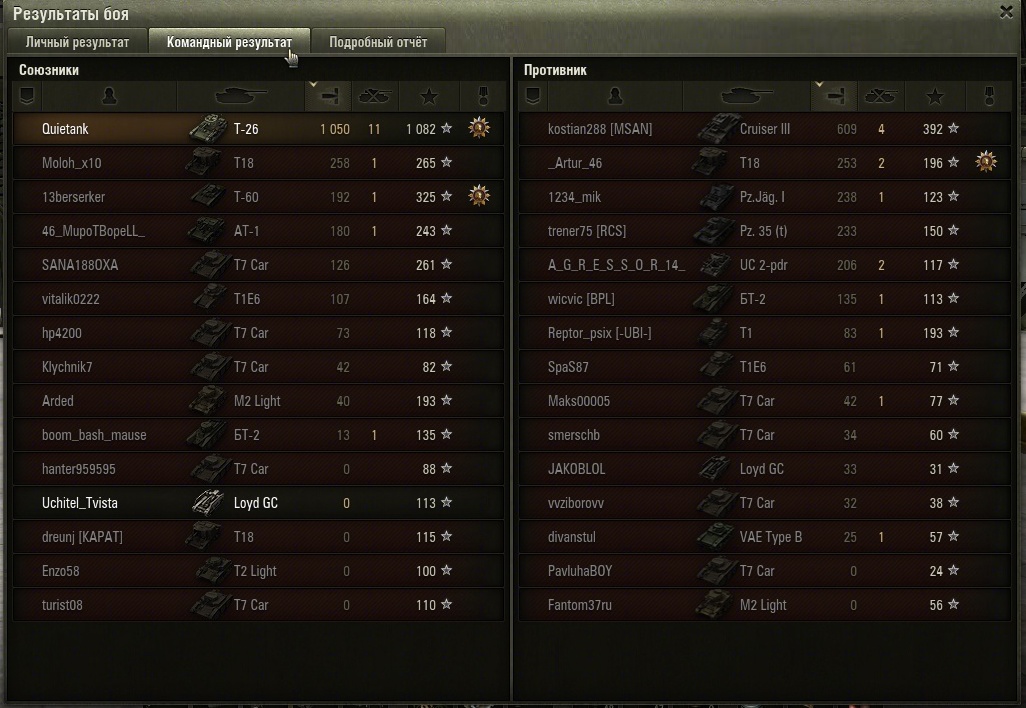 Спасибки, Т-26, поднял ты мне сейчас настроение, а американца (11-ю жертву) опустил ниже плинтуса (см.описание реплея).