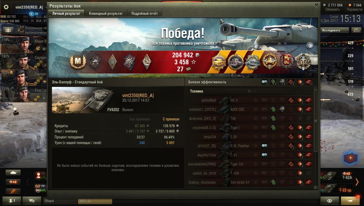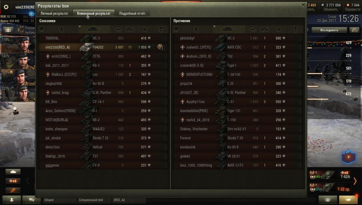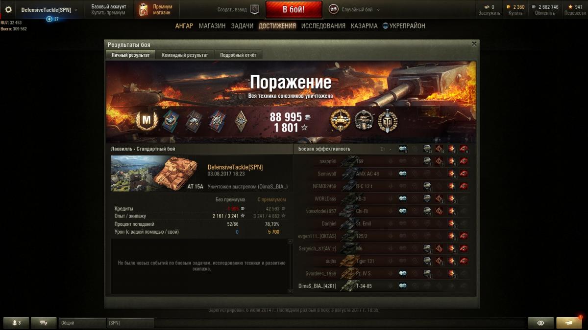 DefensiveTackle Опубликовано: 18 февраля, 2020 Игроки 6 612 публикации 15 017 боёв Жалоба Поделиться Опубликовано: 18 февраля, 2020 (изменено) АТ15А опыт за поражение (если брать "с учётом опыта за достойное сопротивление" ) - 1801/2702.http://wotreplays.ru/site/10324836#lasvill-defensivetackle-at_15a Изменено 18 февраля, 2020 пользователем DefensiveTackle Ссылка на комментарий Поделиться на других сайтах Другие способы поделиться...