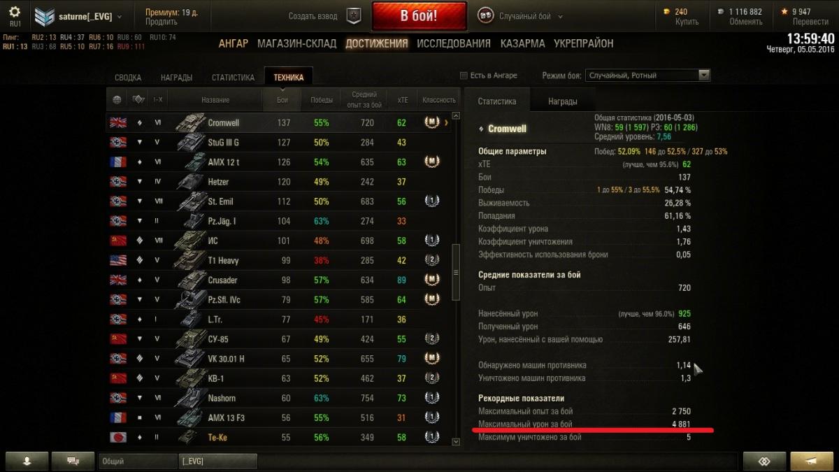 saturne Опубликовано: 5 мая, 2016 Игроки 5 публикаций 48 824 боя Жалоба Поделиться Опубликовано: 5 мая, 2016 (изменено) У меня максимальный урон за бой на кромвеле больше, чем приведен в таблице Изменено 5 мая, 2016 пользователем saturne Ссылка на комментарий Поделиться на других сайтах Другие способы поделиться...