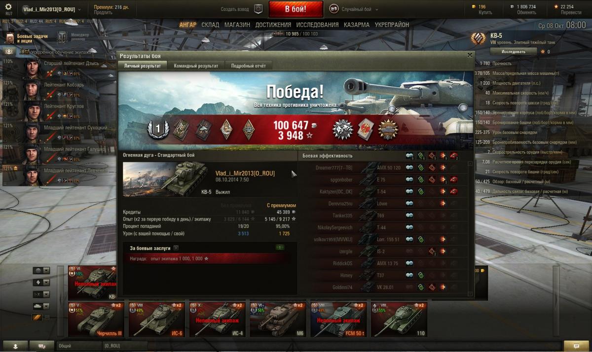 Vlad_i_Mir2013 Опубликовано: 15 октября, 2014 Игроки 689 публикаций 85 509 боёв Поделиться Опубликовано: 15 октября, 2014 (изменено) 15 Окт 2014 - 11:13 пользователь Riot_Guy сказал:Может, при определенных условиях. Главное из них - отсутствие САУ в командах. Если, внимательенее посмотреть на скрин, арта в этом бою присутствовала. Лора даже накинула мне пару раз в башню, но в данном случае это не было проблемой.Исход любого боя зависит от стечения обстоятельст и распределения олений по командам. В этом бою с оленями нам повезло, соперник гораздо превосходил по их количеству. Лева, Е-75, Т69 встали на позиции ПТ в аллее, Леву и Т69 вынесли союзники, ваншотный Е-75 в конце боя в отчаяньи пытался затаранить, мой ваншотный КВ-5, но не учел разницу масс, за что мне дали ленотчку камикадзе.В рандоме трудно говорить о слаженных командных действиях, но иногда, получается, что одна из команд действует очень грамотно и успех в этом бою в первую очередь связан с хорошей командной игрой. Изменено 15 октября, 2014 пользователем Vlad_i_Mir2013 В проекты WG играю бесплатно. Спасибо за марафон на Е-25 и "Тайного Деда Мороза". Коротко о звуках: завел газонокосилку, выстрелил из духовушки, непробил кастрюлю. Ссылка на комментарий