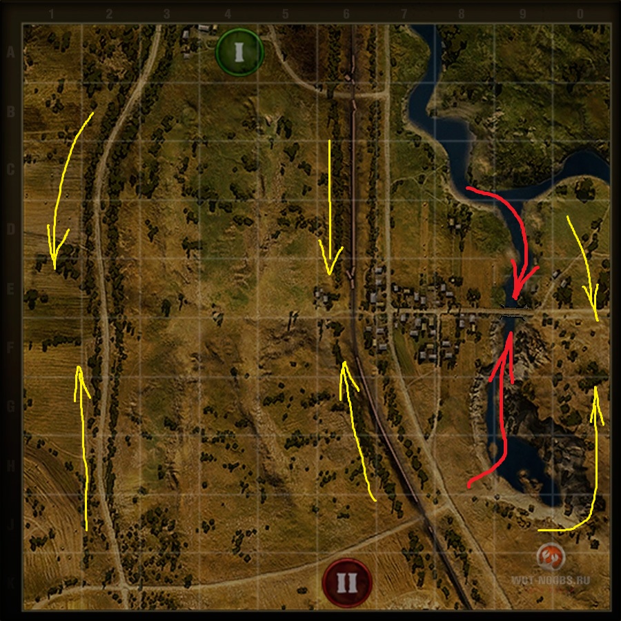 anonym_XnWZiYgcWK12 Опубликовано: 23 июня, 2014 Игроки 352 публикации 96 665 боёв Поделиться Опубликовано: 23 июня, 2014 В квадрате F2-F3 есть углубление, которое дает преимущество нижней команде. Оттуда можно удачно светить. У верхней тоже вроде как есть, но то ли изгиб аллеи то ли еще какой нюанс не позволяет аналогично светить верхней команде. И тогда у нижней команды преимущество. Ссылка на комментарий