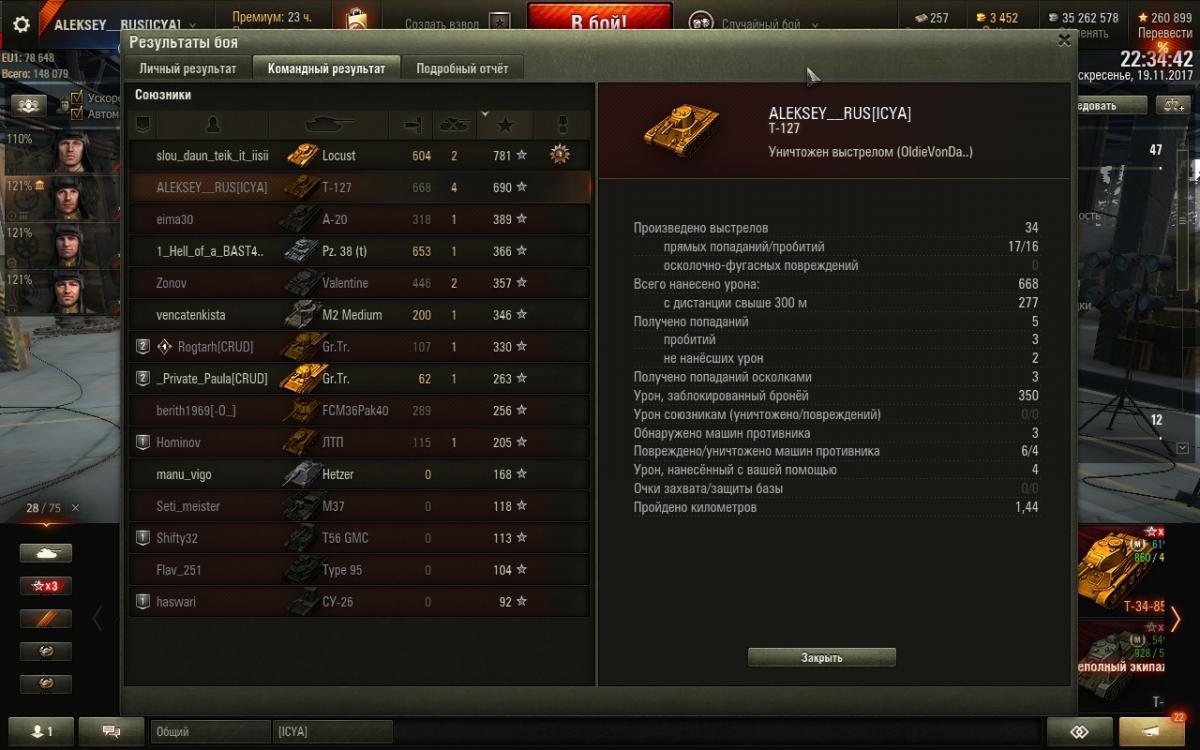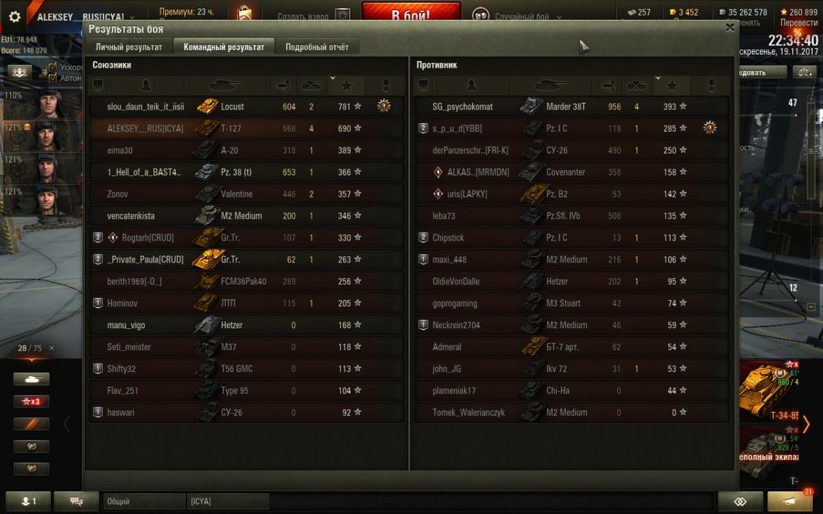 LEXA__ Опубликовано: 19 ноября, 2017 Игроки 779 публикаций 6 470 боёв Поделиться Опубликовано: 19 ноября, 2017 (изменено) Прохоровку для 3 лвл открыли?Только что на Т-127 на Евро-сервере попал.Бой, кстати, не то что эпичный, но ппц странный. Никто, кроме меня и ФСМ не поехали на аллею тяжей. (с 4 лвл играли).В итоге, аллею соперник прорашил, я еле убежать успел))) Потом заколебался базу отбивать и успешно погиб.Впрочем, посмотрите сами, кому интересно. И повторяю вопрос: 3 лвл теперь может на Прохоровке воевать? Поискал новость об этом, не нашел. Может только для евро или прессаккаунт в бою был?http://cdn-frm-eu.wargaming.net/wot/ru/uploads/monthly_11_2017/post-1751386-0-26261200-1511122293_thumb.jpg http://cdn-frm-eu.wargaming.net/wot/ru/uploads/monthly_11_2017/post-1751386-0-32549100-1511122322_thumb.jpg http://cdn-frm-eu.wargaming.net/wot/ru/uploads/monthly_11_2017/post-1751386-0-66982200-1511122360_thumb.jpgUPD: покатал на 3 лвл, похоже все карты для троек открыли. ПОЧЕМУ НОВОСТИ НЕТ? Покажите мне её!20171119_2223_ussr-R56_T-127_05_prohorovka.wotreplay Изменено 19 ноября, 2017 пользователем LEXA__ Имею евро-твинк с 43к боев."Стальной Охотник" на 1-е апреля. Только для 8 лвл! Как вам?ДЛЯ РЕКРУТОВ! Создаёшь аккаунт? ИНВАЙТ КОДЫ/ССЫЛКИ! Ссылка на комментарий