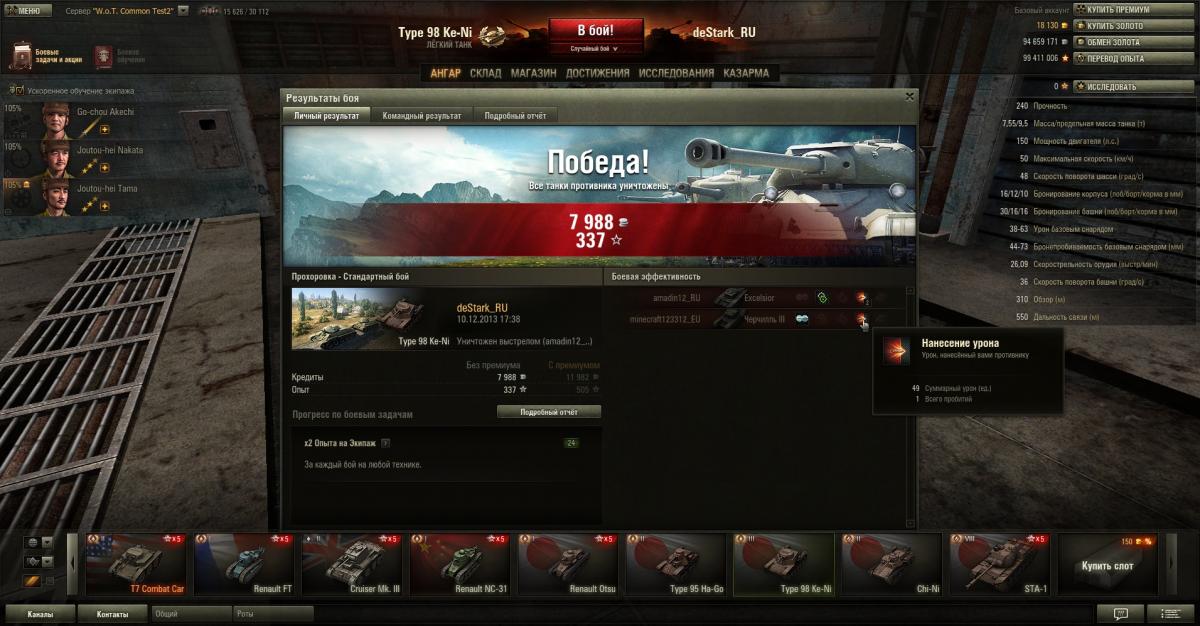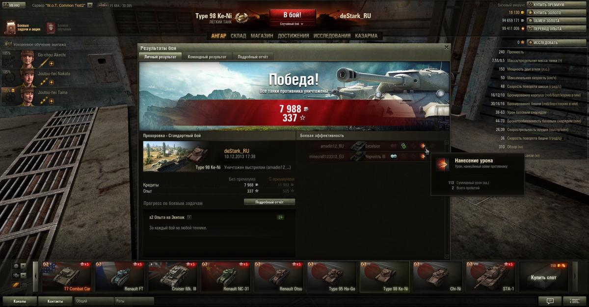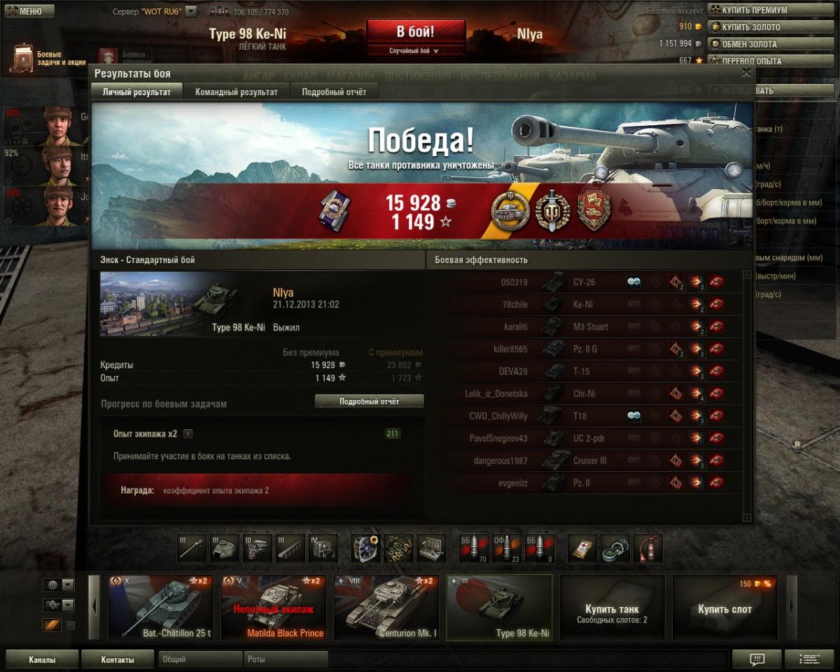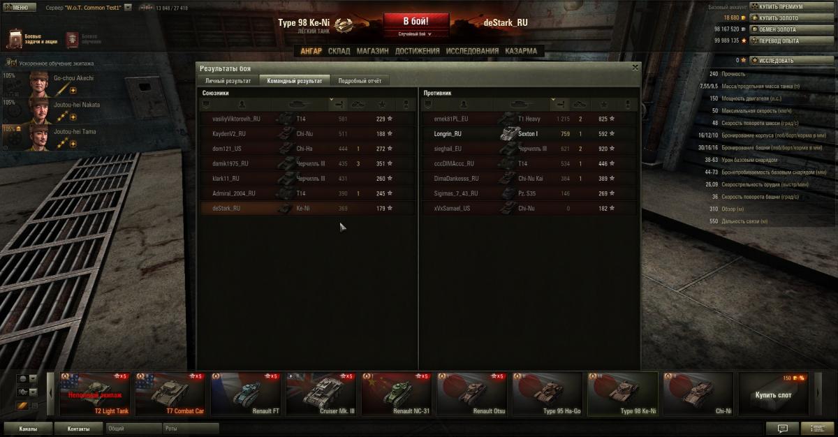 Кстати, без всякой голды убил двух Чи-Ха (в двух боях): одного из засады, а другому заехал в тыл. Вообще, 2 убитых противника в одном бою, 3 в другом - при этом, Кенни только в одном бою входил в первую пятерку.