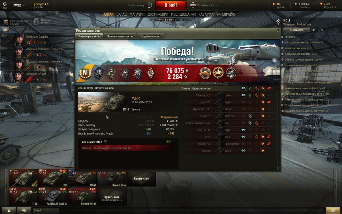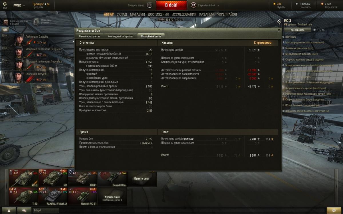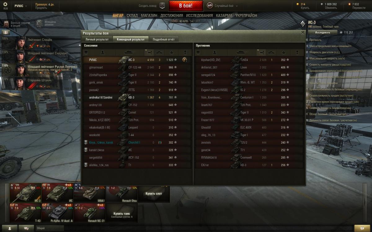 4) Интересно, чем же не угодили кв-2, т34 и чи-ну? Процент побед на этих танках у Вас выше среднего по аккаунту. Да и вообще, танки весьма неплохие для своего уровня.