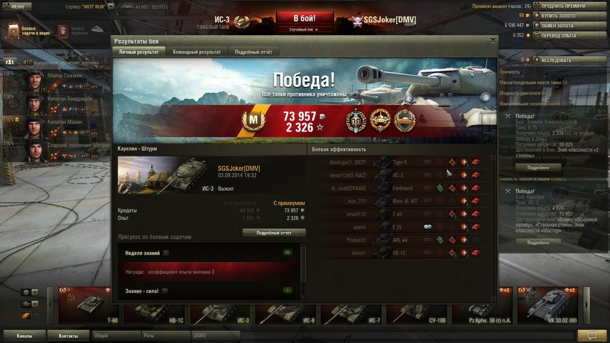 Купил вчера ИС-3. Вернул в ангар, так сказать (последний раз играл на нем, когда качал первой советскую ветку, т.е. больше 2 лет назад). Не знаю у кого там проблемы с мастером - за вчерашний вечер и сегодняшних боев 10-15 получил 4 или 5 мастеров. Когда то он мне казался унылым и бесполезным. Сейчас же - катая довольно весело на ИС-6 (я думаю все знают, какая там стабилизация и пробитие) решил попробовать ис-3 снова, тем более жирная скидка. Давно мне в клане все говорили "купи для укрепов и КБ, не пожалеешь". Так вот, скажу я вам - оказывается ис-6 отличный тренажер, правящий руки. После его 175 пробития, на ис-3 кажется что стреляешь из плазмогана и он шьет все навылет))) Тем более что пушка поточнее, даже с пробитием десяток не испытываю проблем. Динамика тоже получше немного шестерки будет. Хотя минус - броня, все кому не лень пробивают щучий нос. Даже прямо - люк мехвода шьется. Но зато у нас есть крепкая башня - юзаем рельеф и гнем. Короче показался очень-очень фановой машиной. Посадил экипаж, который ждал пока я нафармлю на ИС-4 (3 почти полных перка).