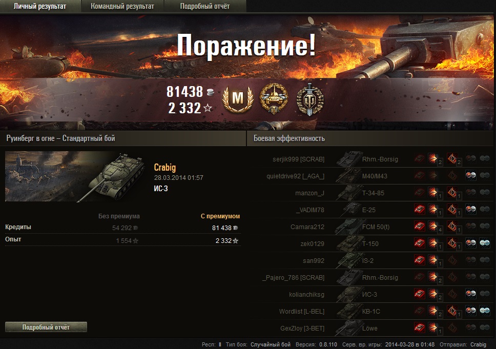 Хотите настроение себе поднять? Я сегодня на вотреплей.ру реплейчик один нашёл, я под столом валялся:trollface: На Мурованке, встречный бой, в конце боя остаются два ИС-3...Таких танцев я ещё не видел:popcorn:А ещё всё это дополняется комментами обеих команд...