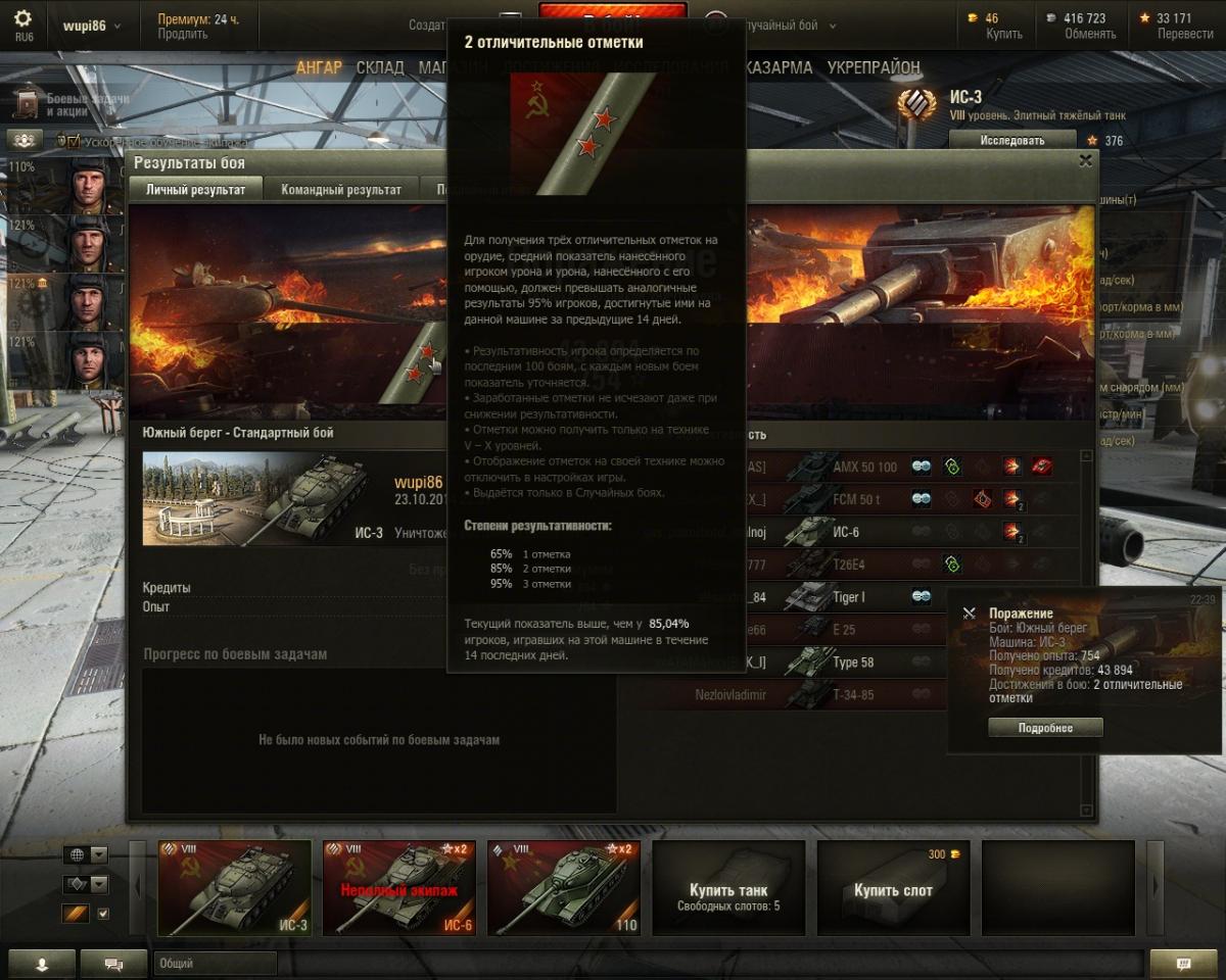 Ис-3 пройден, останется в моем ангаре навсегда. Удалось получить 2 отметки на ствол. Ис-8 уже куплен, жду акции чтобы переучить экипаж. Надеюсь что ис-8 меня не разочарует.