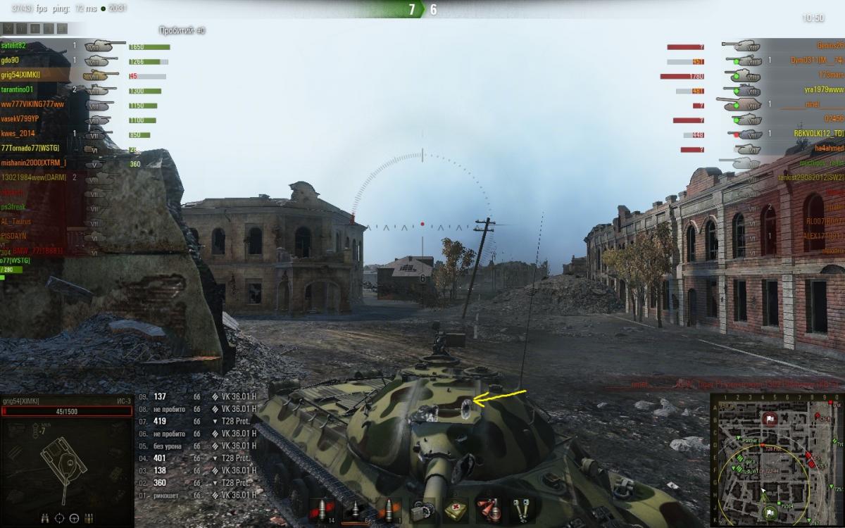так у вас три отметины всего на маске и три пробития от прототипа,скорее всего именно он и пробил маску все три раза,а есть отметина на козырьке и скорее всего на крыше,куда вам и целил и пару раз пробил вк 3601н скорее всего. На скрине слабо отражена информация.