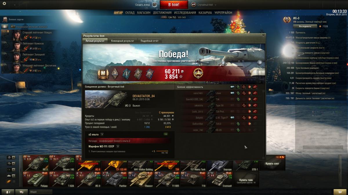 Всё началось вчера, когда я в одном бою двумя последовательными выстрелами башни двух ИС-3 в полёт отправил. Думал везенье.