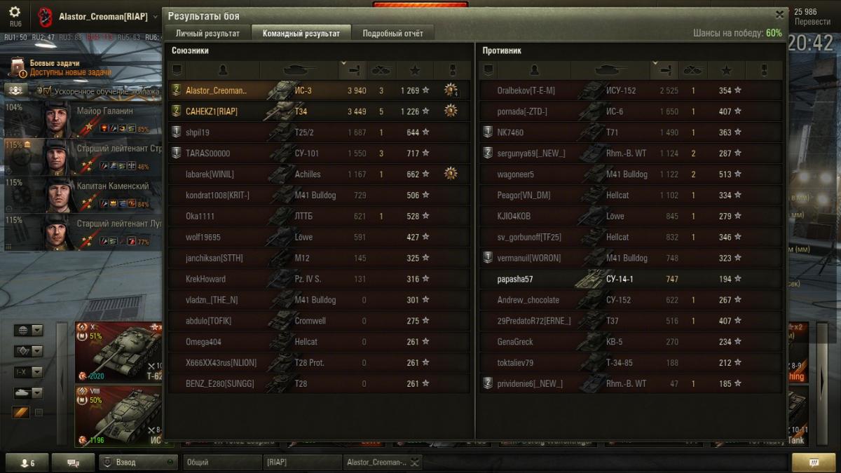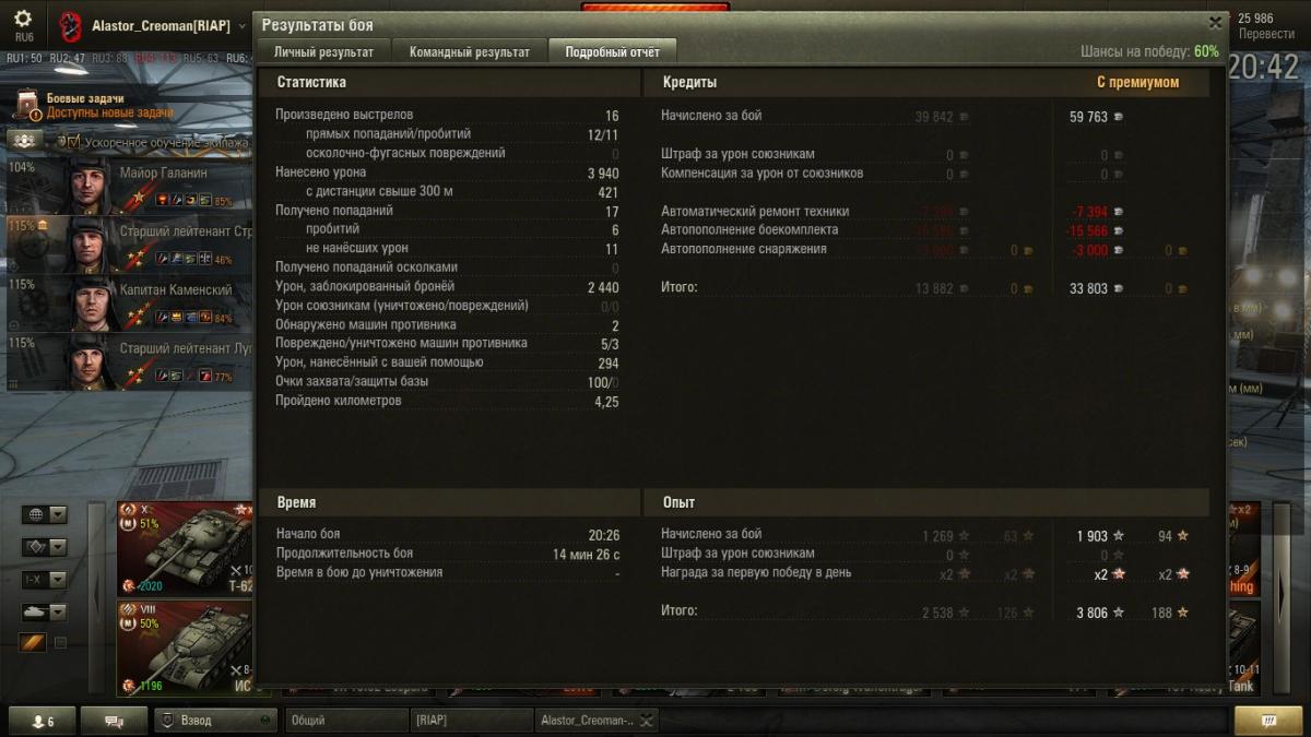 Игра взводом с товарищем из клана. Втащили бой, в конце еще и с выбитым БК. Думал два борща будут поумнее. Как итог - выполнил 14 ЛБЗ для ТТ, на двоих ушатали более полкоманды противника.