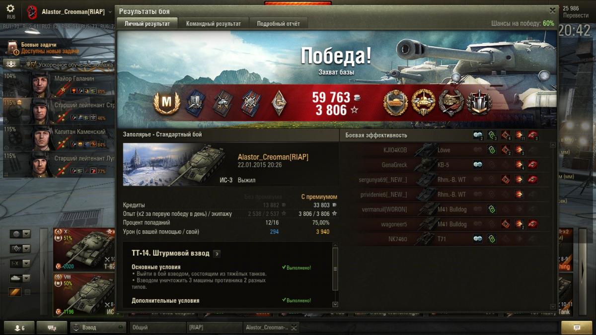 Сделал с 3 раза задачу ТТ-15 на Штуга на ИС-3, в первый раз совсем не получилось, играл против 10 лвл, второй раз не хватило 700, в третьем бою выполнил.