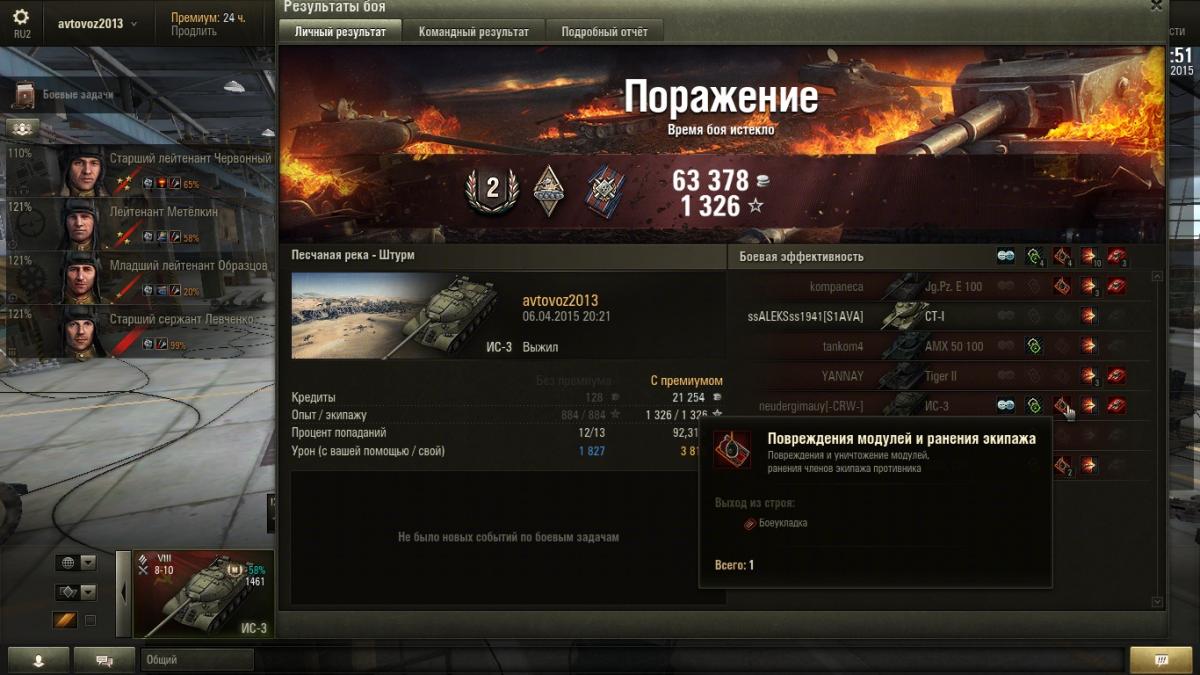 В сегодняшних 3-х боях на ИС-3 адские взрывы: вражеский ИС-6 получает от меня попадание с пробитием, в ответ дает ббшкой в скулу и рвет меня в клочья. В следующем бое уже я заваншотил врага на ИС-3 (тоже ББ).