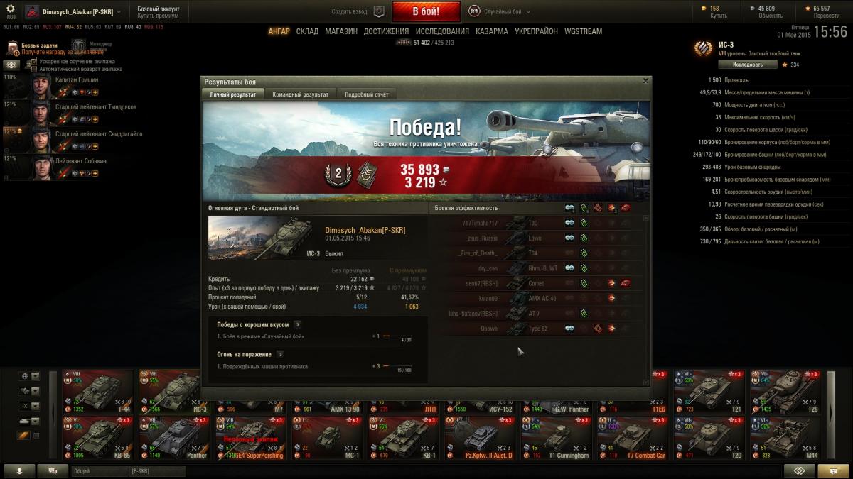 А что до командных боев, то лично мне было гораздо комфортнее играть на Т-32 или 110... Там по крайней мере боеукладка так не ломается. У Ис-3 с этим явно перебор.