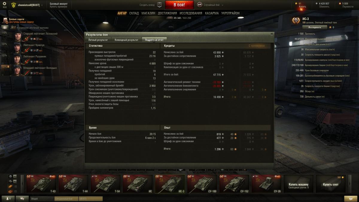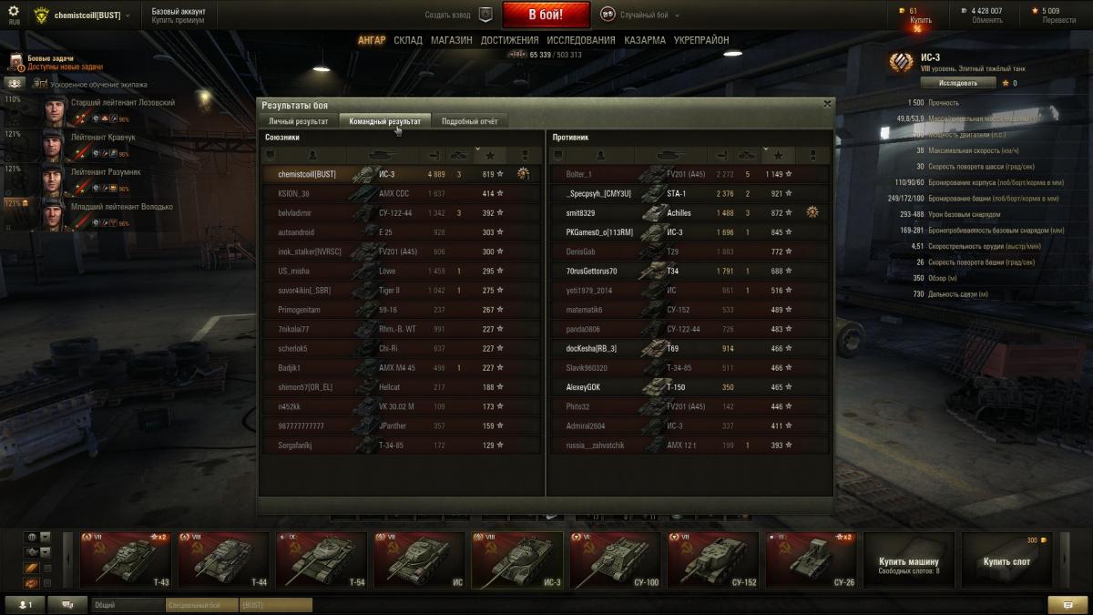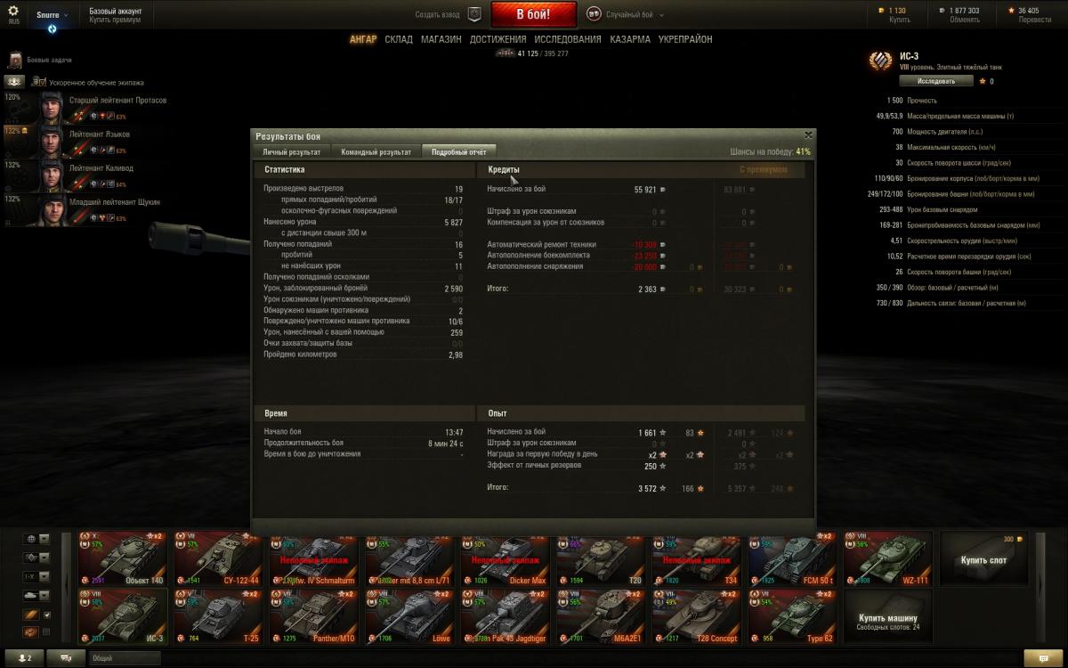 ЗЫ.: Сейчас сыграл 5 боев на ИС-3, 2440 средней дамажки, ВН8 2650, а РЭ всего 1250 почему то, хотя кидал по своему засвету, еще и светил.