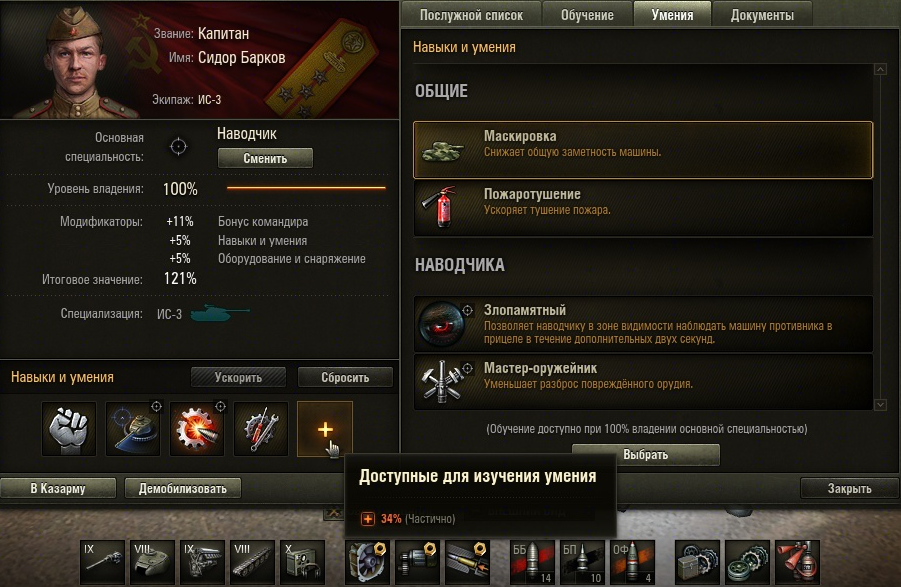 Наводчик - ББ, Ремонт, Снайпер, Плавный поворот башни.