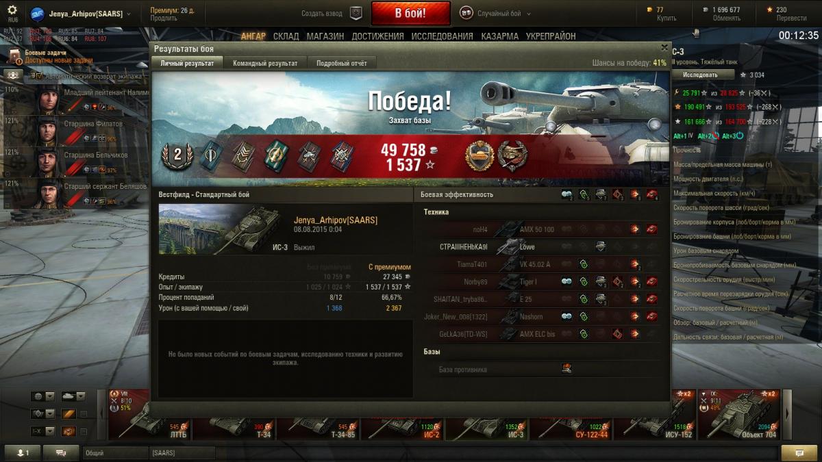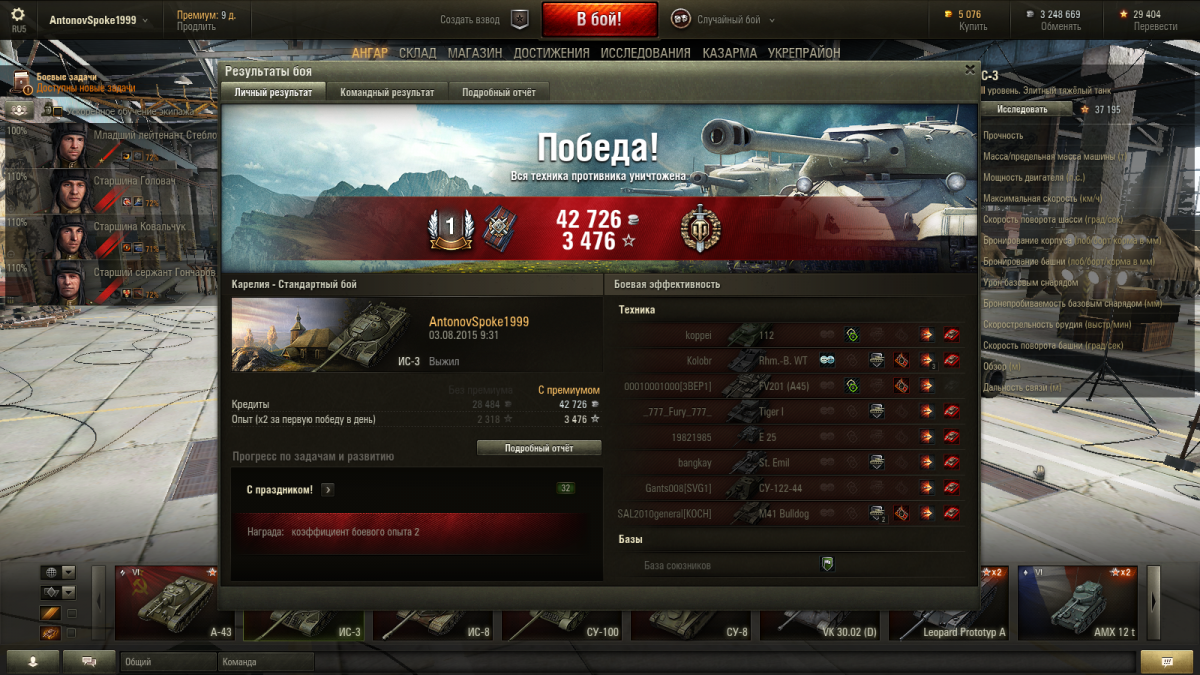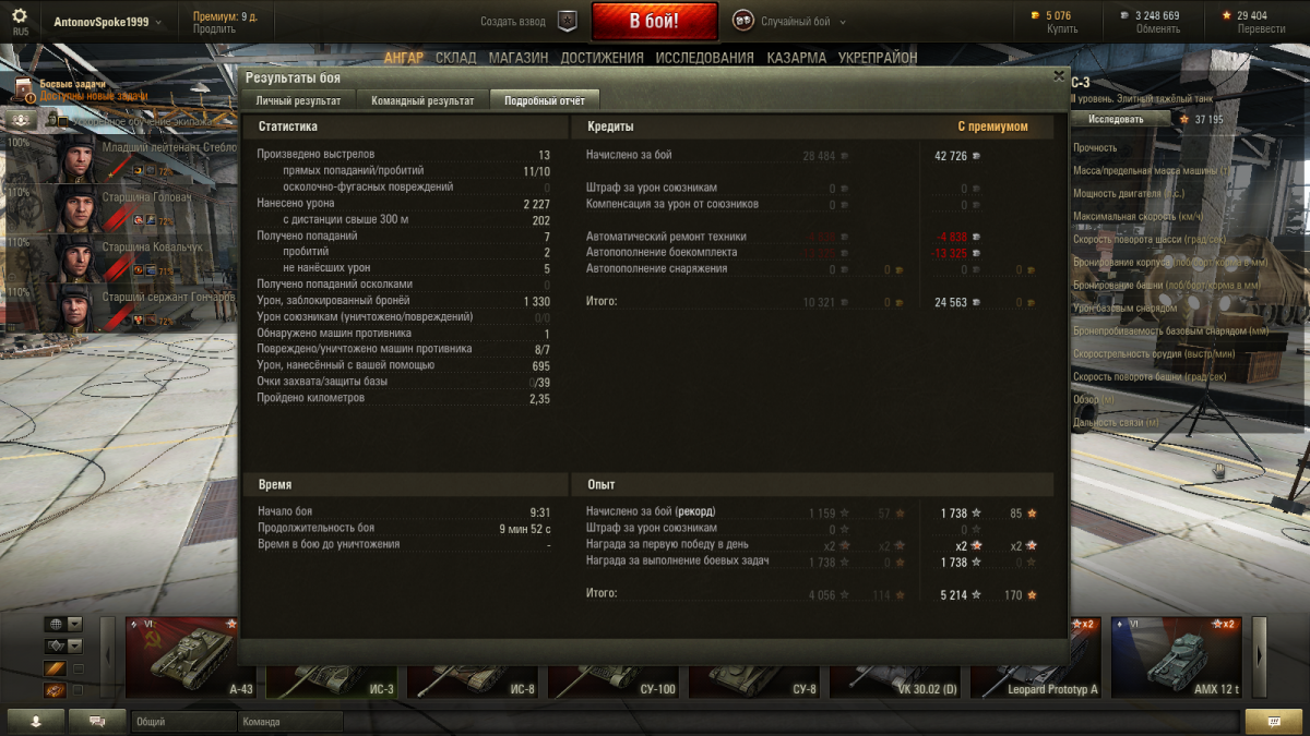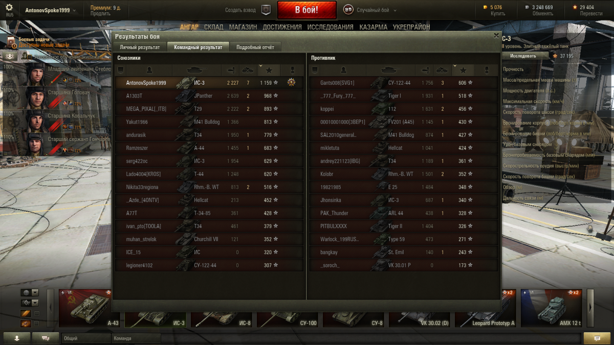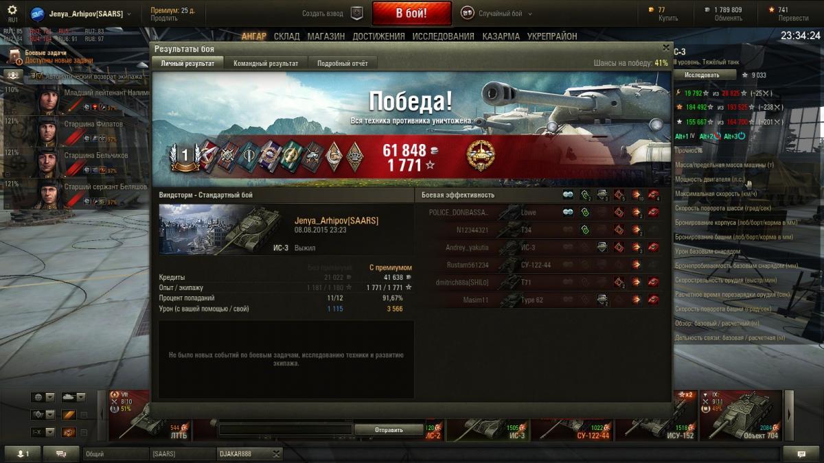 Экипаж с ИС-2-Берлин: 100%+ББ+процентов 80% ремонта. Досыл, стаб, вентиль.
