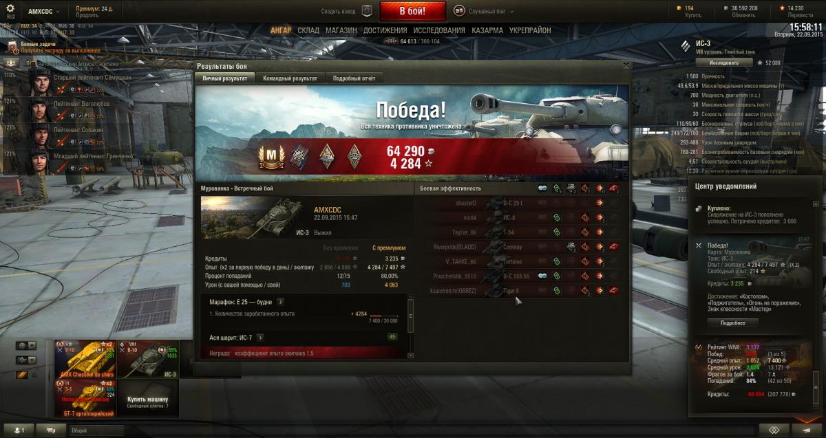 Ну тот ИС-3 и этот - две большие разницы. Того ИС-3 насиловал ИС-6 ББшками в ВЛД, НЛД, борт и крышу башни. Про поломанную БК, иногда дважды за бой, я вообще молчу. Сейчас же даже голдой частенько его не пробить. Башня танкует ПТ 9/10. Борт частенько даже Т34 не пробивает под прямым углом. Сыграл пока 12 боёв, параллельно играл на ИС-7 - честно говоря, я даже не вижу особой разницы между ними, кроме меньшего ХП http://cdn-frm-eu.wargaming.net/wot/ru/uploads/monthly_09_2015/post-28090200-0-97397300-1443011597_thumb.jpg