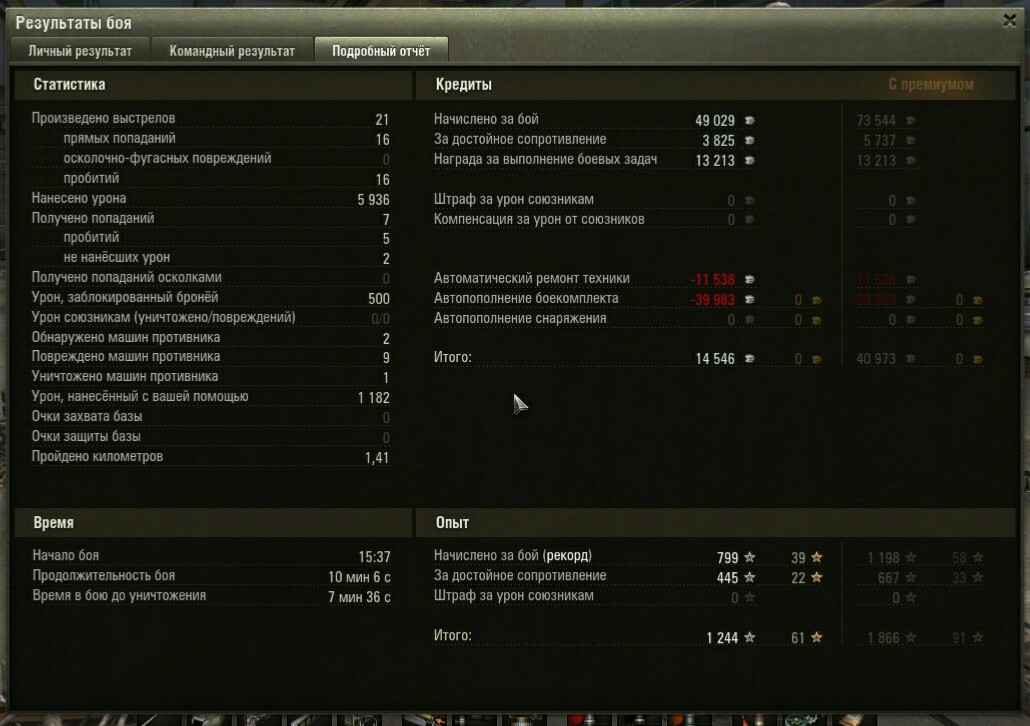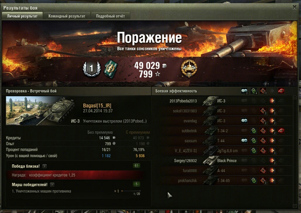 Так медалька же есть, с медалькой как за победу дают и опыта и кредитов.