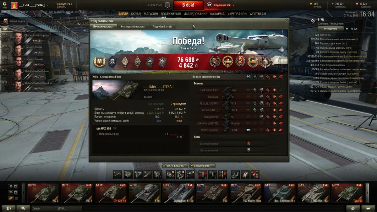 Уникальные машины в ангаре:  Т-22 ср   Объект 907   Объект 260   Объект 279(р)   M60   T95E6   Т95Е2   AMX 50 Foch (155)   FV215b   FV215b (183)   121B