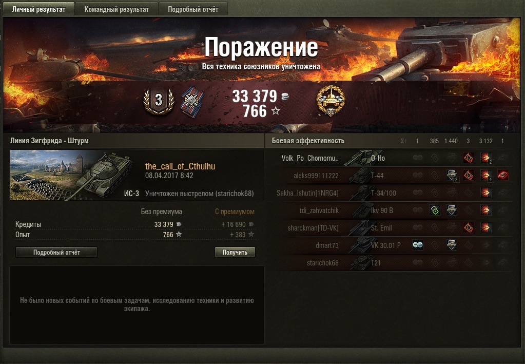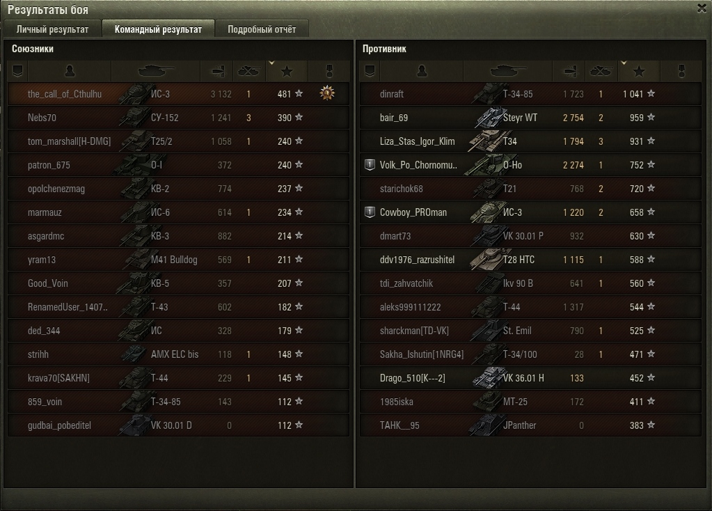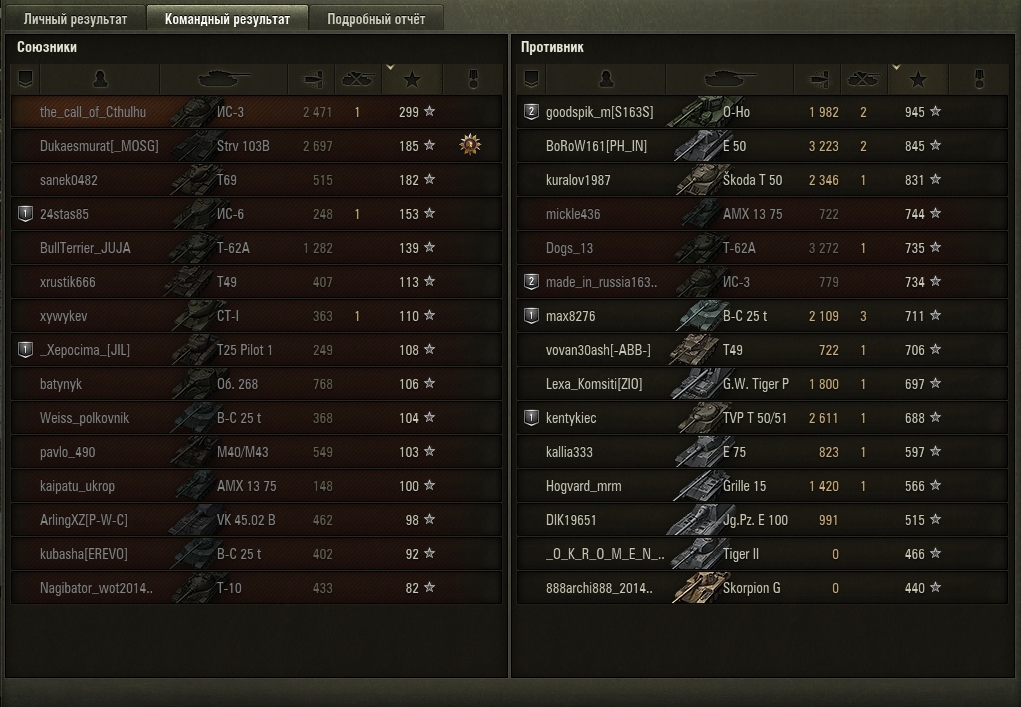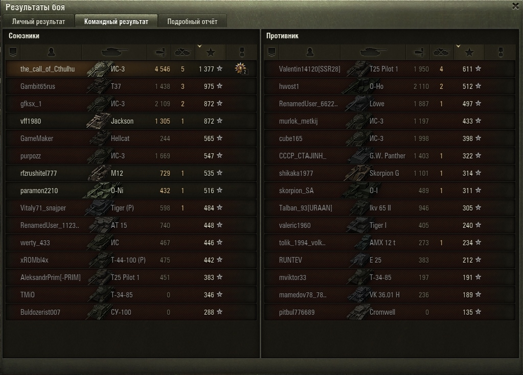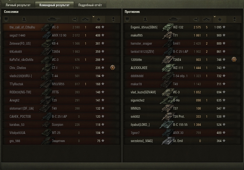 Но. Если верить послебоевой статистике, в команде один-два человека настреливают на свои ХП. Еще два-три - хоть что-то настреливают. Остальные десять - просто мимо проходили. Не понятно мне другое: Какого лешего у противника настрел такой?