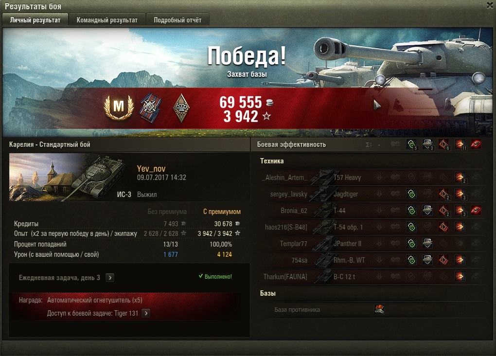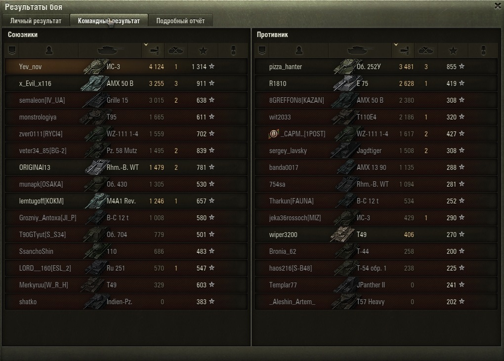Классно советы "нинагибают". В топе по дамагу переапанный Защитник и "занерфленный" в край ИС-3.