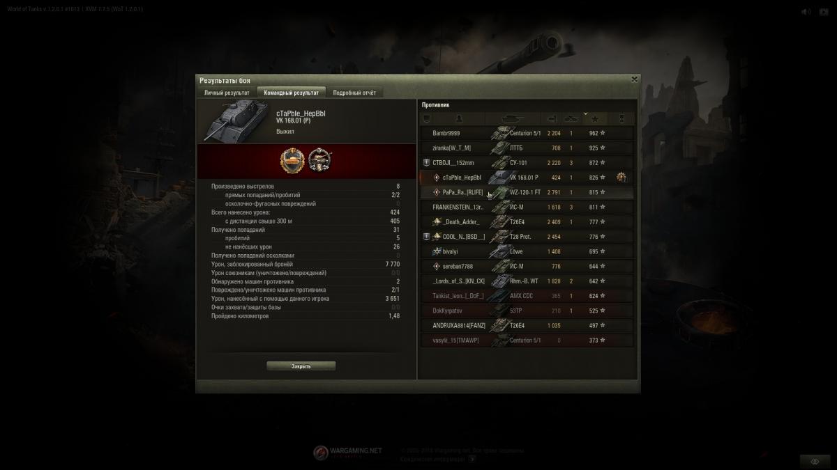 ЗЫ: на скрине с картой малиновка их ВК тупо встал у камушка в центре карты и издевался над всеми остальными - светил и танковал .... из 13 выстрелов только от меня всего 3 пробития = 2 фугас 1 ББ (5 попаданий голдой). Если бы я встал так на ИС-3, я бы и посветить не смог, и попасть тоже врядли, ну а больше 13 не пробитий, для ИС-3 это просто из раздела фантастики!