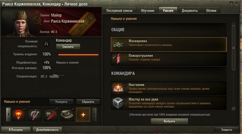 У меня как раз проблема что я не знаю что на этом танке полезнее: мастер на все руки, наставник или маскировка.