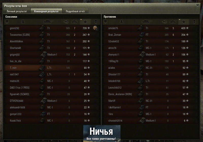 A_D_A_M_A_N_T_ Опубликовано: 20 января, 2014 Игроки 608 публикаций 83 114 боёв Поделиться Опубликовано: 20 января, 2014 Вчера играли бой и такая ничья была впервые, наверное самая обидная, т.к. время захвата и время окончания боя были одинаковы (секунда в секунду), но к сожалению победу не засчитали :( Ссылка на комментарий