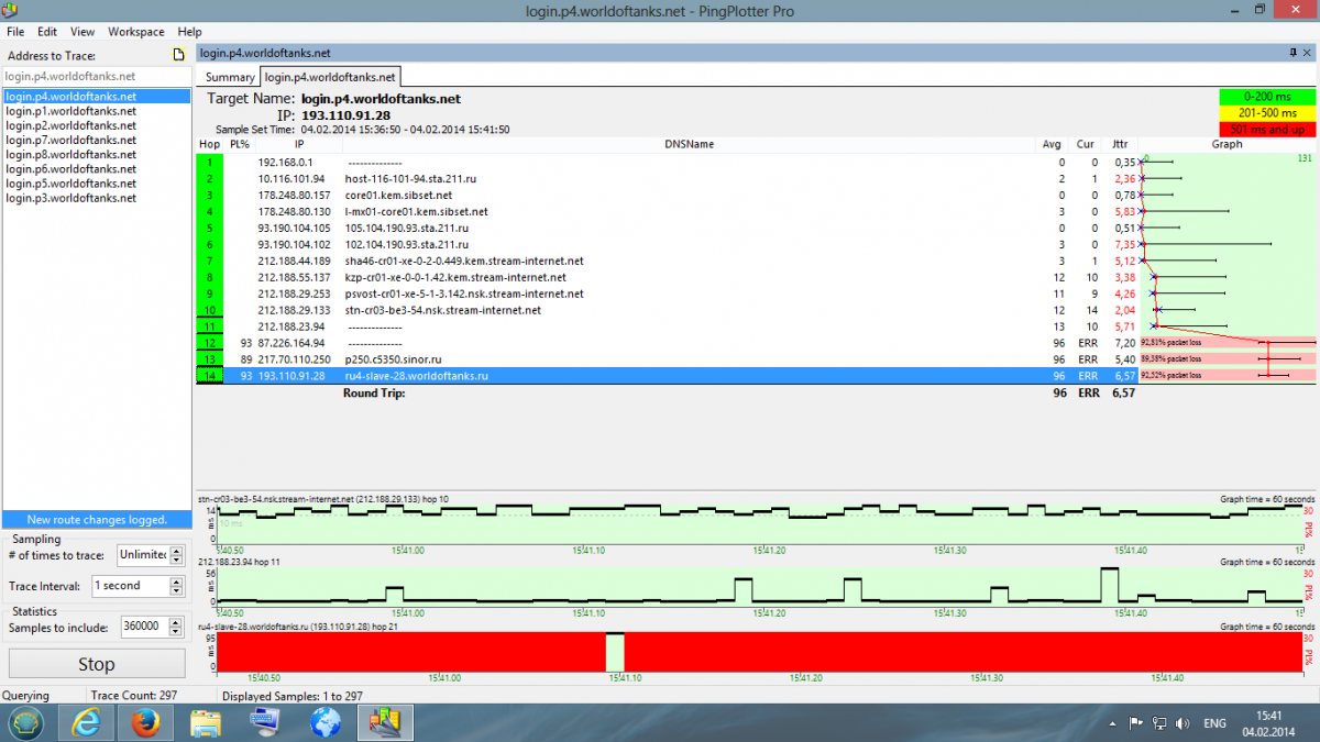6apa6yJIbka_B_LLITaHuLLI Опубликовано: 4 февраля, 2014 Игроки 447 публикаций 18 165 боёв Поделиться Опубликовано: 4 февраля, 2014 04 Фев 2014 - 11:53 пользователь _ssams_ сказал:Там таки как раз и видно, что, проблема с серваком. Посмотрите внимательнее. Ошибки начинаются на 2-х предшетвующих IP адресах. Соответственно проблема магистрального провайдера. IP адрес RU4: 193.110.91.10 1 Ссылка на комментарий