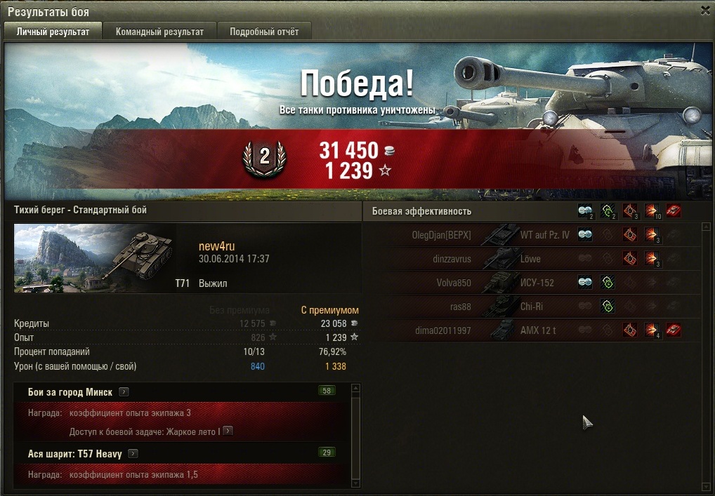 RenamedUser_7120672 Опубликовано: 30 июня, 2014 Игроки 16 публикаций 4 046 боёв Поделиться Опубликовано: 30 июня, 2014 (изменено) Если набиваешь 100 урона на КВАСе дает х4,5 опыта экипажу сейчаС? Вот здесь сколько опыта экипаж получит? 1,5 или 3 или 4.5? Изменено 30 июня, 2014 пользователем Botinok_Chris Ссылка на комментарий Поделиться на других сайтах Другие способы поделиться...