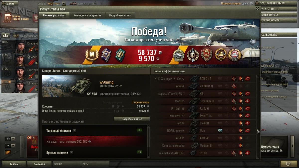 Получено опыта: 6 905 (x5 за первую победу в день)