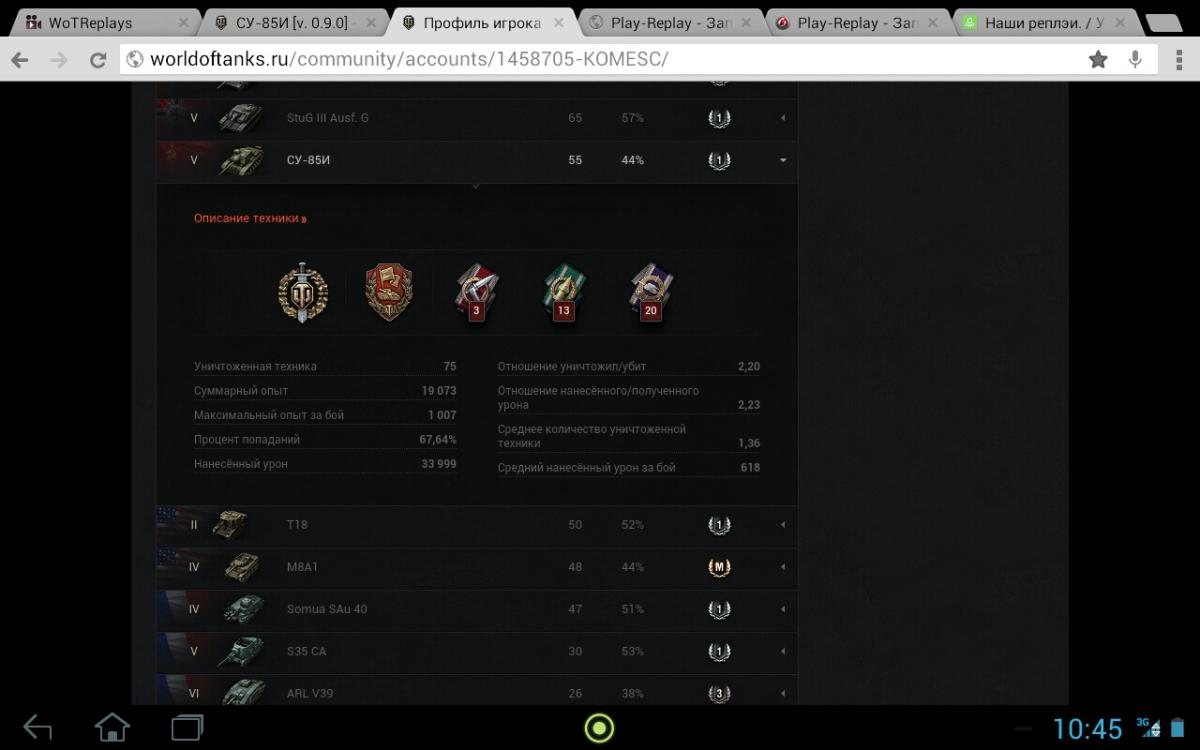 купил для коллекции в эту акцию Валю2, т-15 и су85и...Не могу ее понять пока...ну то есть не научился еще на ней играть...в ангаре фцм36пак40, на ней не уедешь и тактика понятна, обзор и дамаг...ты-глаза...ванна французская 5лвл, с ней тоже понятно вроде как, открытая рубка, орудие с долгой перезарядкой...чужой свет и дамаг...а су85и производит впечатление среднего танка у меня с ее скоростью и маневренностью, может именно поэтому я лезу вперед?!но худших результатов у меня пока нет ни на какой технике)ну не люблю я сидеть когда есть скорость, но это совсем не тот вариант и скорость нужно использовать в других целях...буду думать)