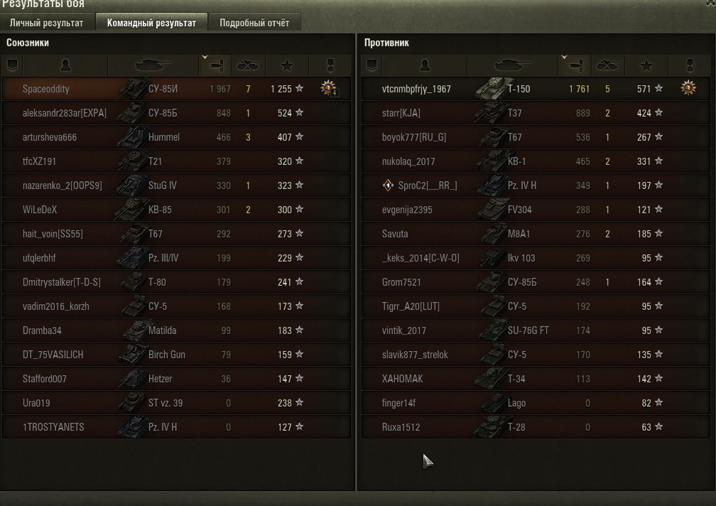 Кроме того, что был убит ненароком Т-28, не находящийся в прицеле :), обратил внимание, что пока Су-85и смог совершить свой первый выстрел, счёт уже был 3-5.