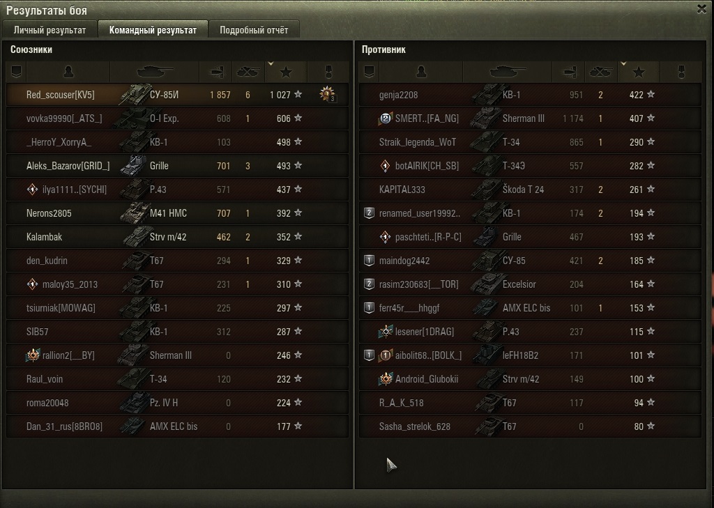 Неплохой бой на 3к уровна против 6 был благополучно слит. А тут получилось затащить на голом везении. Оленемером не пользуюсь, но после боя почекал союзников и соперников - они были достойны друг друга... Но ведь хорошие бои тогда и случаются, когда союзники сливаются чуть быстрее противников :)