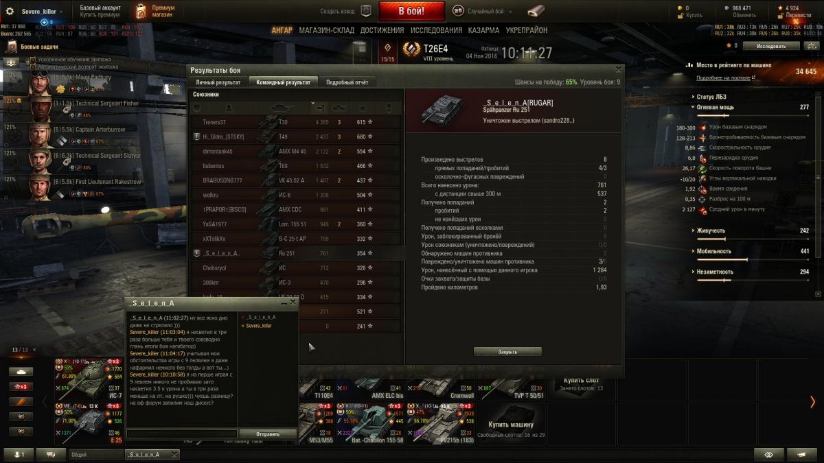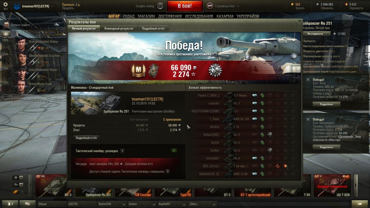 В первый день выхода патча 0.9.3 за свободный опыт открыл и купил Ru 251 и М41 WB. Оба танка очень понравились, игра на них доставляет удовольствие, да и процент побед радует. Недавно открыл и взял Т49, мнение не однозначное о нем, ожидал большего от 152-мм гаубицы.