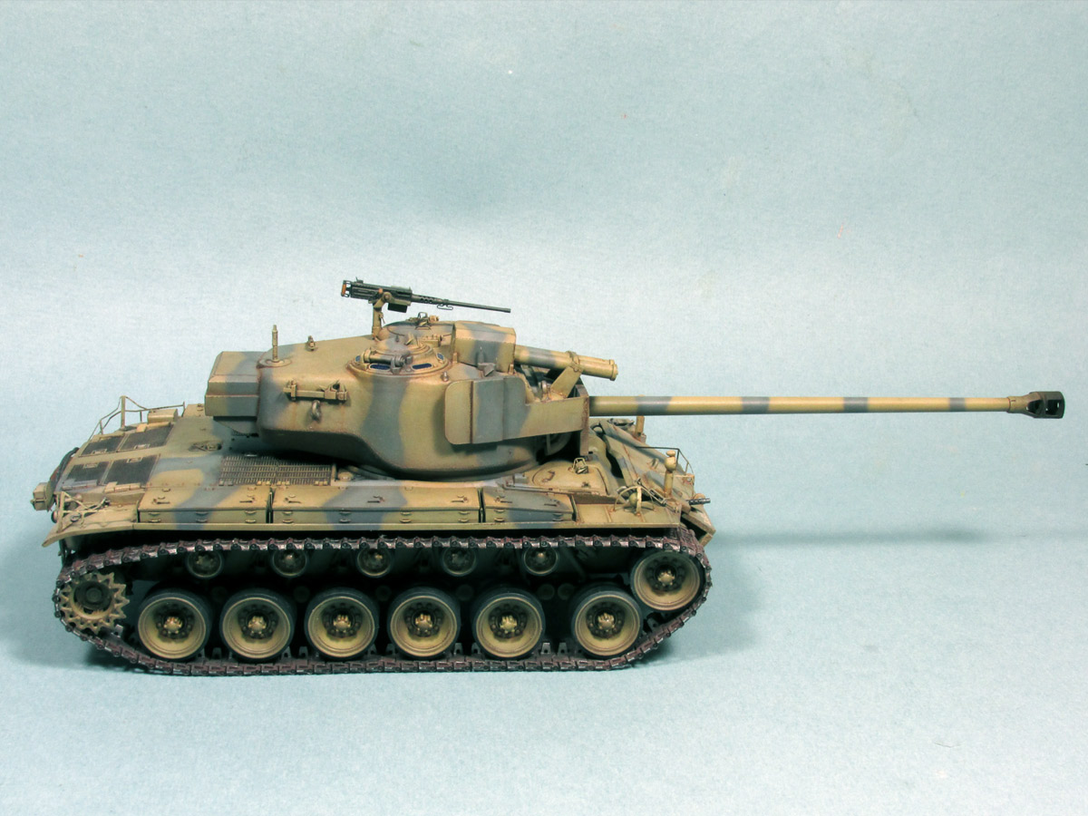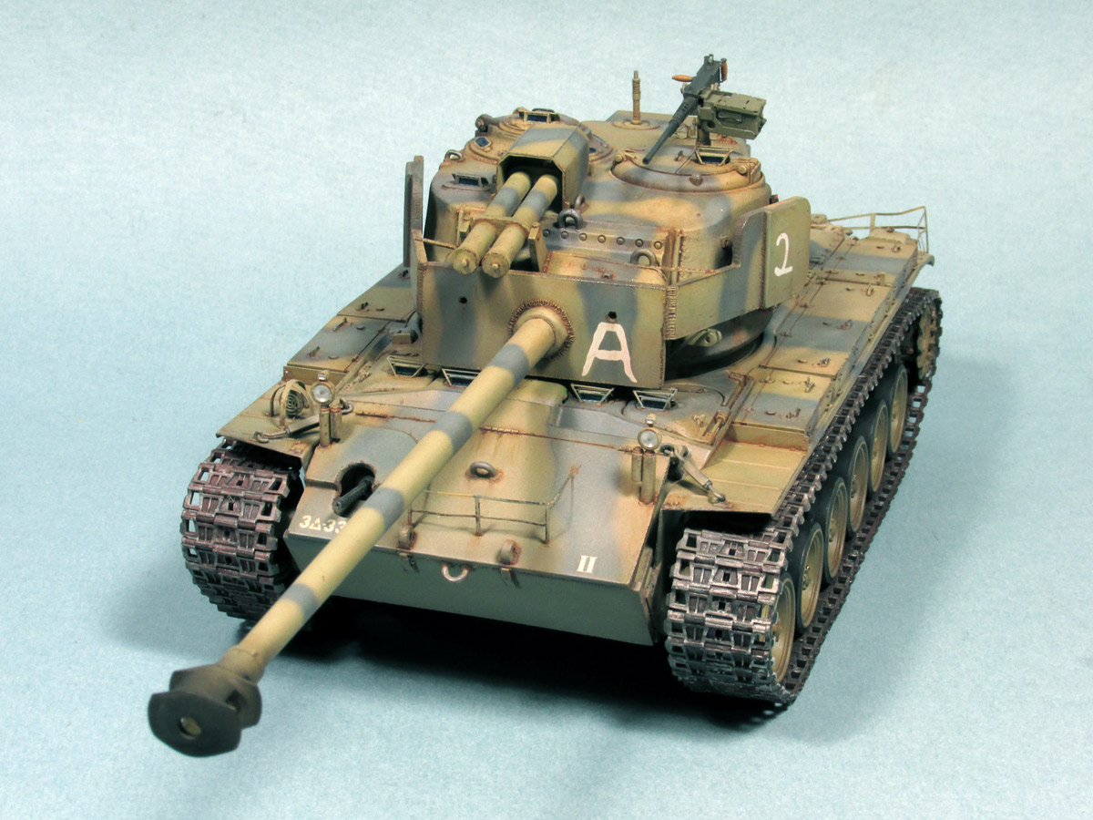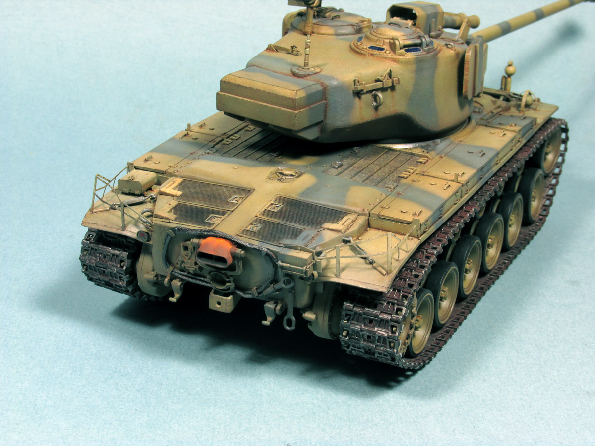kust1974 Опубликовано: 11 июля, 2014 Игроки 356 публикаций 78 211 боёв Автор Поделиться Опубликовано: 11 июля, 2014 Окрас выглядит не случайно похожим на немецкий. В реальности машина дорабатывалась наваркой пластин из трофейных Пантер, а полосы серого - это и есть немецкий серый по выгоревшему оливковому. В реальности модель выглядит чуть темнее. Ссылка на комментарий Поделиться на других сайтах Другие способы поделиться...