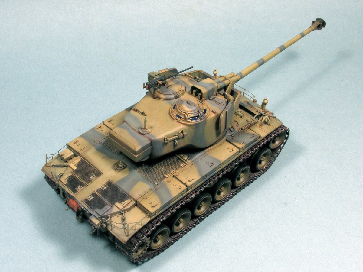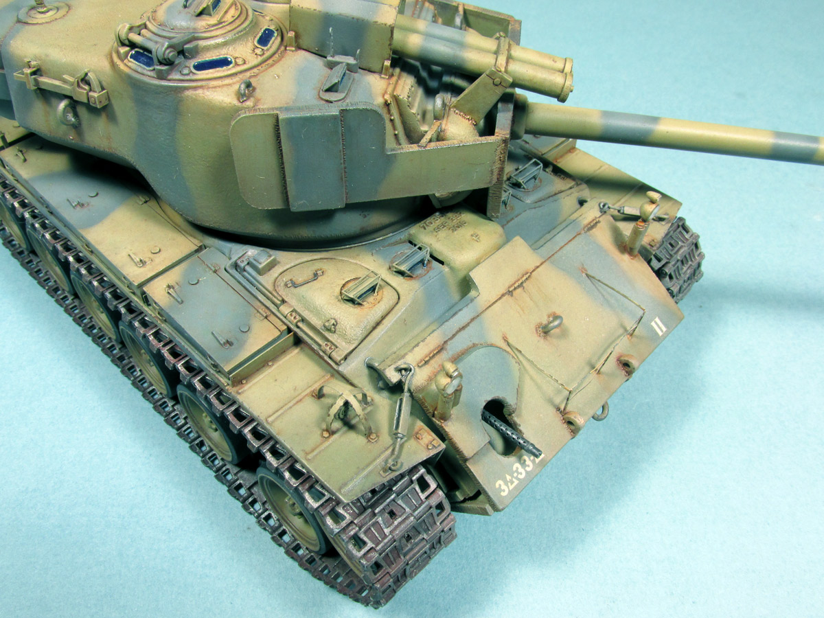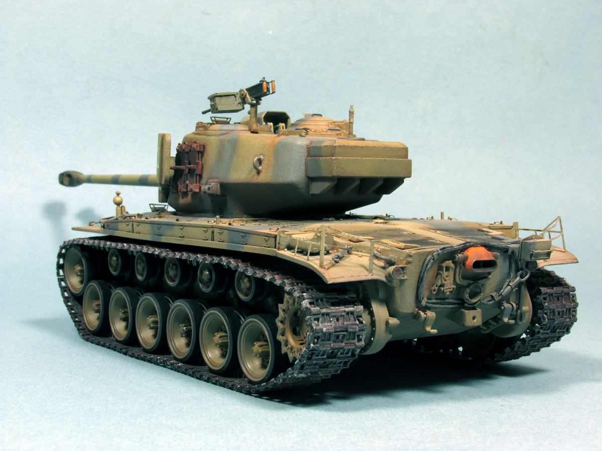 kust1974 Опубликовано: 11 июля, 2014 Игроки 356 публикаций 78 211 боёв Автор Поделиться Опубликовано: 11 июля, 2014 Окрас выглядит не случайно похожим на немецкий. В реальности машина дорабатывалась наваркой пластин из трофейных Пантер, а полосы серого - это и есть немецкий серый по выгоревшему оливковому. В реальности модель выглядит чуть темнее. Ссылка на комментарий Поделиться на других сайтах Другие способы поделиться...