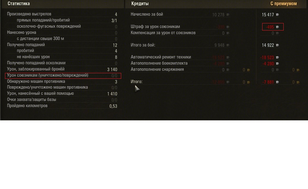 anonym_EoMYrWhvTFpF Опубликовано: 22 июля, 2014 Игроки 867 публикаций 9 161 бой Поделиться Опубликовано: 22 июля, 2014 22 Июл 2014 - 18:25 пользователь xDEHb сказал:не совсем понятно за что штраф за повреждение союзников без урона (по модулям) накладывается штраф. Ссылка на комментарий