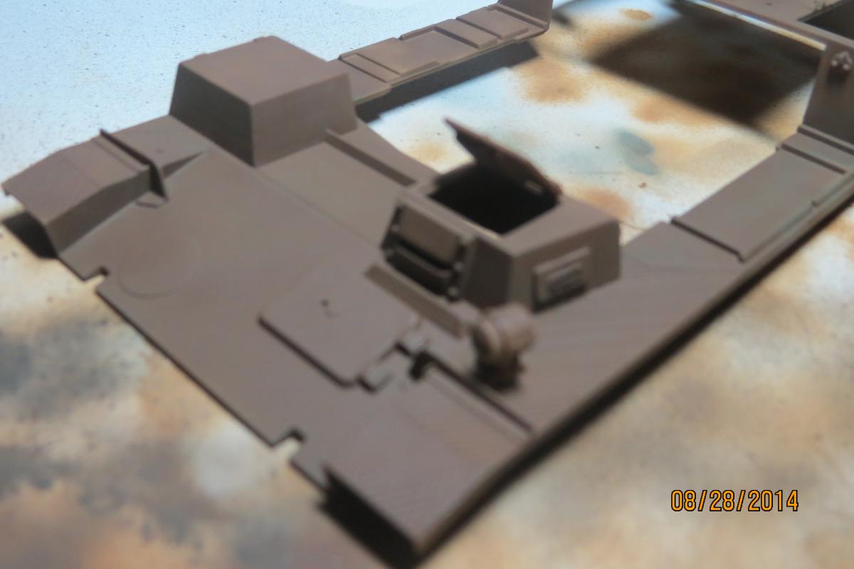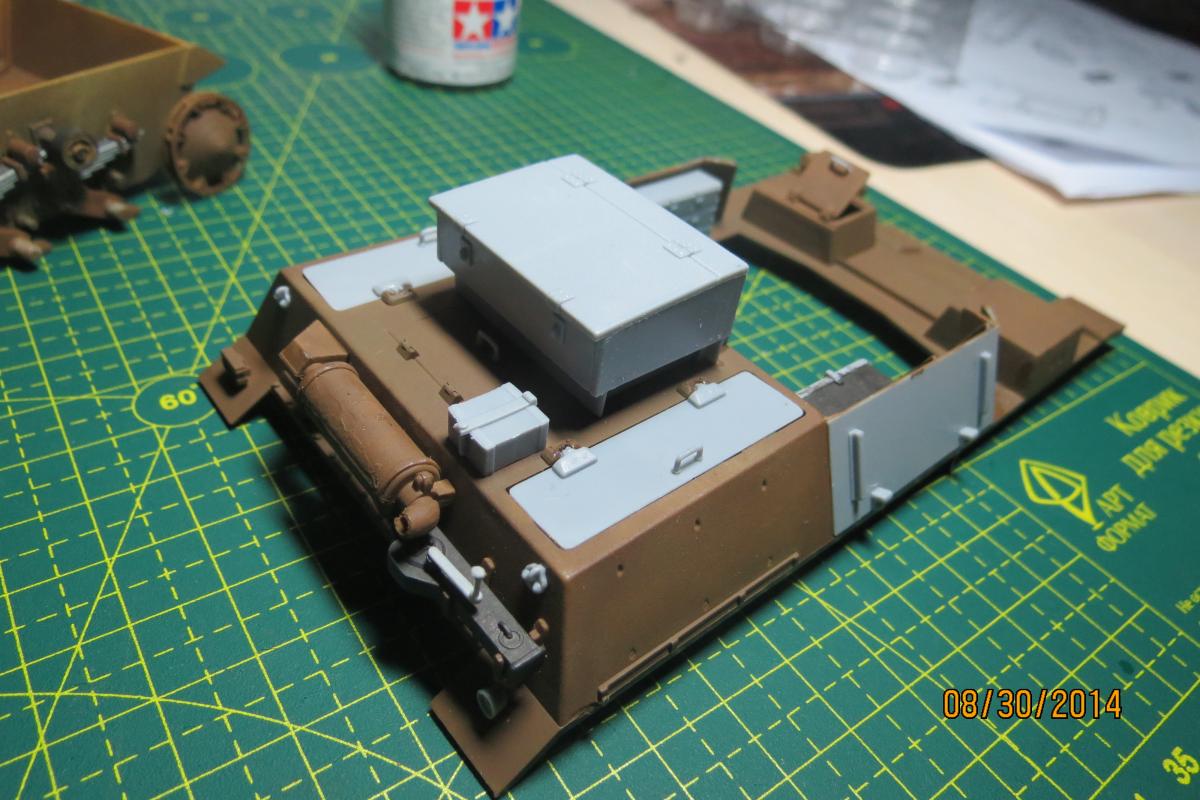 XuHkok Опубликовано: 31 августа, 2014 Игроки 86 публикаций 54 402 боя Автор Поделиться Опубликовано: 31 августа, 2014 Прошу прощения за промежуток, сломалась память на фотоаппаратеНа данный момент собрал немного внутри, не стал, правда переусердствовать, так как все закроется, оставил только открытый люк мехвода, так как эта арта применяется не в лобовом столкновении, я думаю его редко закрывают.Нанес базовый слой краски и немного пигмента грязи (но не конечный)от 26 августа. Ссылка на комментарий