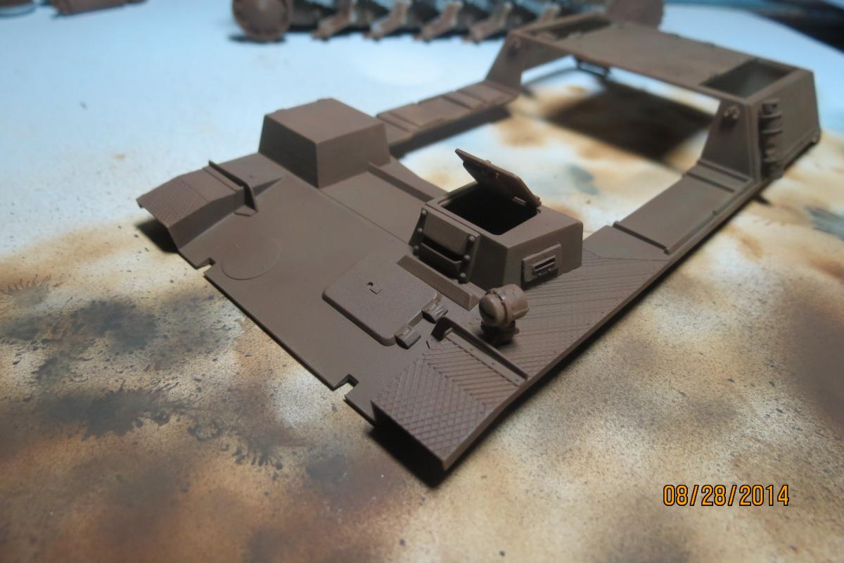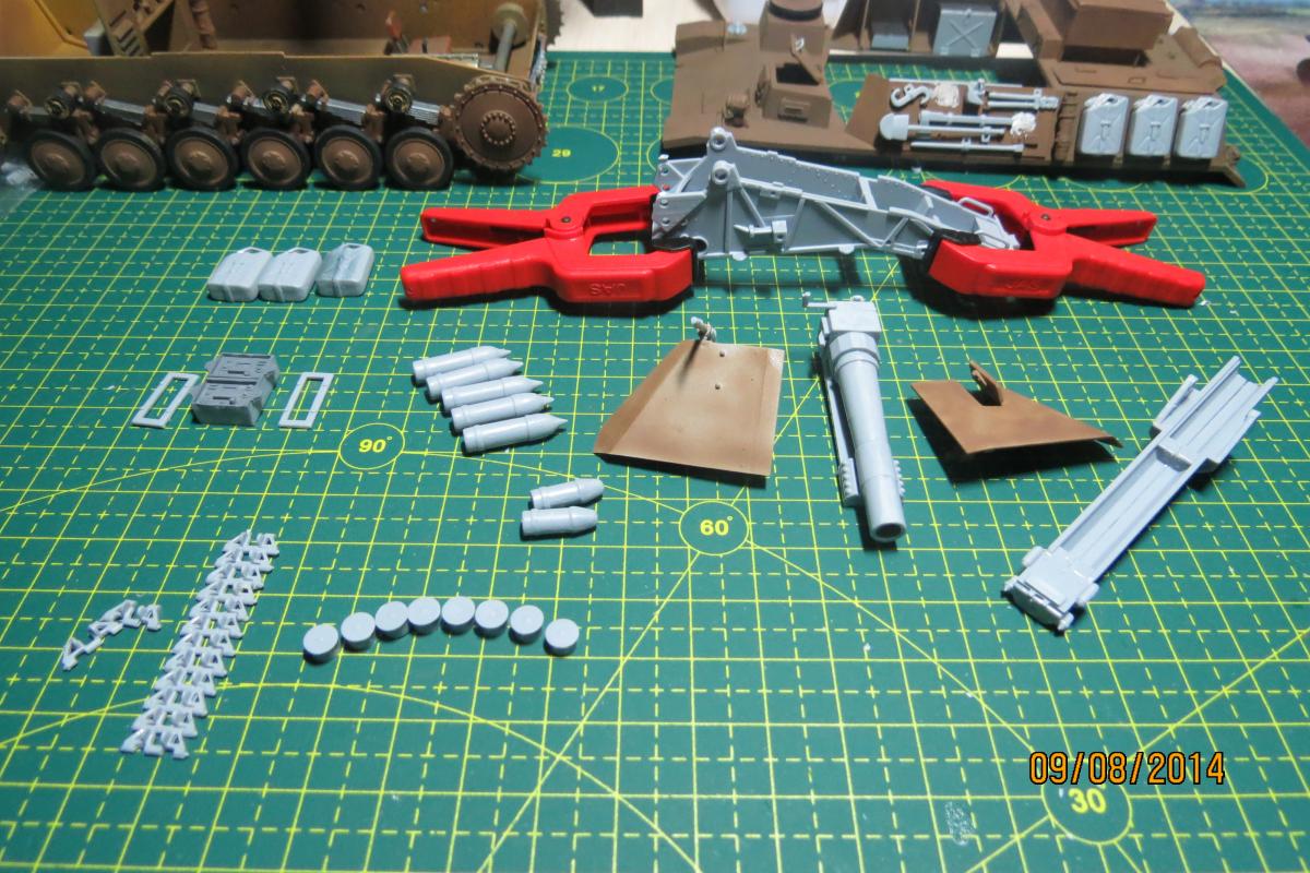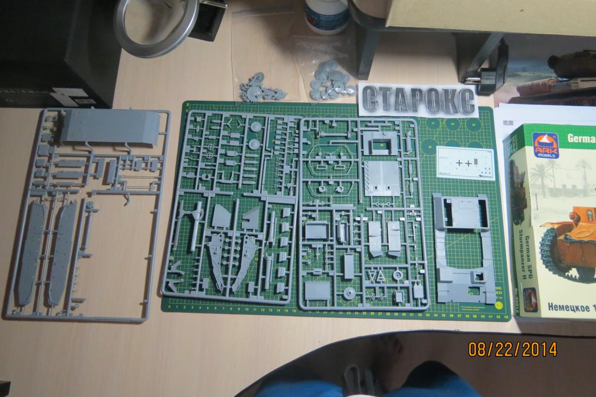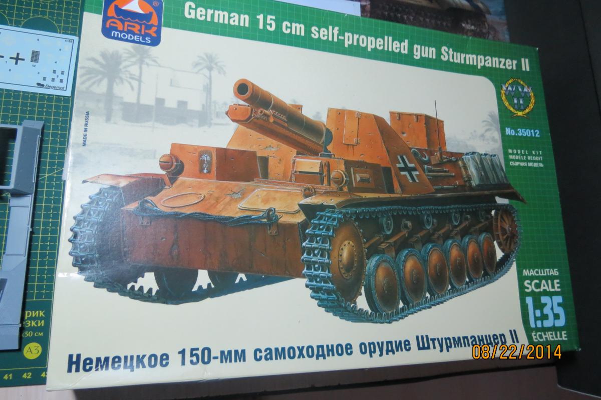 XuHkok Опубликовано: 21 августа, 2014 Игроки 86 публикаций 54 402 боя Поделиться Опубликовано: 21 августа, 2014 Доброго всем дня!Начинающий моделист (опыт всего один год), мне 32 года, работаю директором московской компании, решил поплотнее заняться моделированием.В средствах не стеснен, но мало знаю мест продаж (хороших фототравлений, покрытий для нанесения эффектов и т.д.), если подскажите московский магазин-буду признателен!Дома лежит по меньшей мере коробок 40 разных моделей, вот решил заняться данной моделью.Sturmpanzer IIВыписка из Википедии:15 cm s.I.G.33B Sfl, известная также как Штурмпанцер II (нем. Sturmpanzer II, StPzII), германская самоходная артиллерийская установка периода Второй мировой войны. Относилась к классу самоходных гаубиц, формально классифицировалась как штурмовое орудие.Производство и боевое применениеБыла создана в 1940 году на шасси лёгкого танка Panzerkampfwagen II фирмой «Алкетт». С декабря 1941 по январь 1942 года из линейных танков были переоборудованы 12 серийных САУ этого типа. Все выпущенные Sturmpanzer II в составе 707-й и 708-й рот тяжелых пехотных орудий были приданы Африканскому корпусу и использовались им в 1941—1942 годах, показав себя неудачной конструкцией из-за крайней перегрузки базового шасси. Последние САУ этого типа были потеряны в боях к декабрю 1942 года. Еще инфы:Sturmpanzer II (транслитерируется как Штурмпанцер II, дословно штурмовой танк) — немецкая самоходно-артиллерийская установка (САУ) периода Второй мировой войны, лёгкая по массе. Полное официальное название 15 cm s.IG.33 auf Fahrgestell Panzerkampfwagen II (Sfl.) отражает базу и вооружение САУ — 150-мм тяжёлое пехотное орудие обр. 1933 г. на самоходном лафете на ходовой части лёгкого танка Panzerkampfwagen II. По своему назначению Sturmpanzer I в равной степени являлся самоходной гаубицей и САУ непосредственной поддержки пехоты. Эта боевая машина была создана фирмой «Алькетт» («Alkett») в 1941 году как дальнейшее развитие работ по приданию мобильности тяжёлой полевой артиллерии полкового звена. Предыдущая модель САУ со 150-мм орудием, Sturmpanzer I на базе лёгкого танка Panzerkampfwagen I Ausf.B, обладала рядом весьма существенных недостатков, которые попытались устранить, использовав бо́льшую по габаритам и массе ходовую часть от Panzerkampfwagen II. Последняя подверглась существенным изменениям — корпус удлинили на 60 см и уширили на 32 см, добавили шестой опорный каток на борт и несколько перекомпоновали внутреннее устройство с целью размещения 150-мм орудия и боекомплекта к нему. В отличие от Sturmpanzer I, основное вооружение в виде s.IG.33 уже не устанавливливалось в виде полевого орудия целиком. В декабре 1941-го и январе 1942-го года «Алькетт» переоборудовала 12 линейных танков Panzerkampfwagen II в САУ Sturmpanzer II. Все они были отправлены на североафриканский театр военных действий.Как и предшественник, САУ Sturmpanzer II оказалась малоудачной конструкцией. Их служба в Африканском корпусе выявила крайнюю перегрузку ходовой части, связанную с ней низкую надёжность и постоянную потребность в ремонте. Бесспорным достоинством была высокая огневая мощь машины, но для боевых действий в Северной Африке с быстрыми перемещениями частей на больши́е расстояния самоходка была не приспособлена. Недостаточным был и возимый боекомплект в 10 артиллерийских выстрелов. В декабре 1942 года Вермахтом был потерян последний Sturmpanzer II, ни одной САУ этого типа до настоящего времени не сохранилось. 2 Ссылка на комме