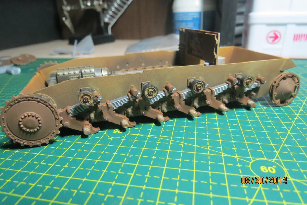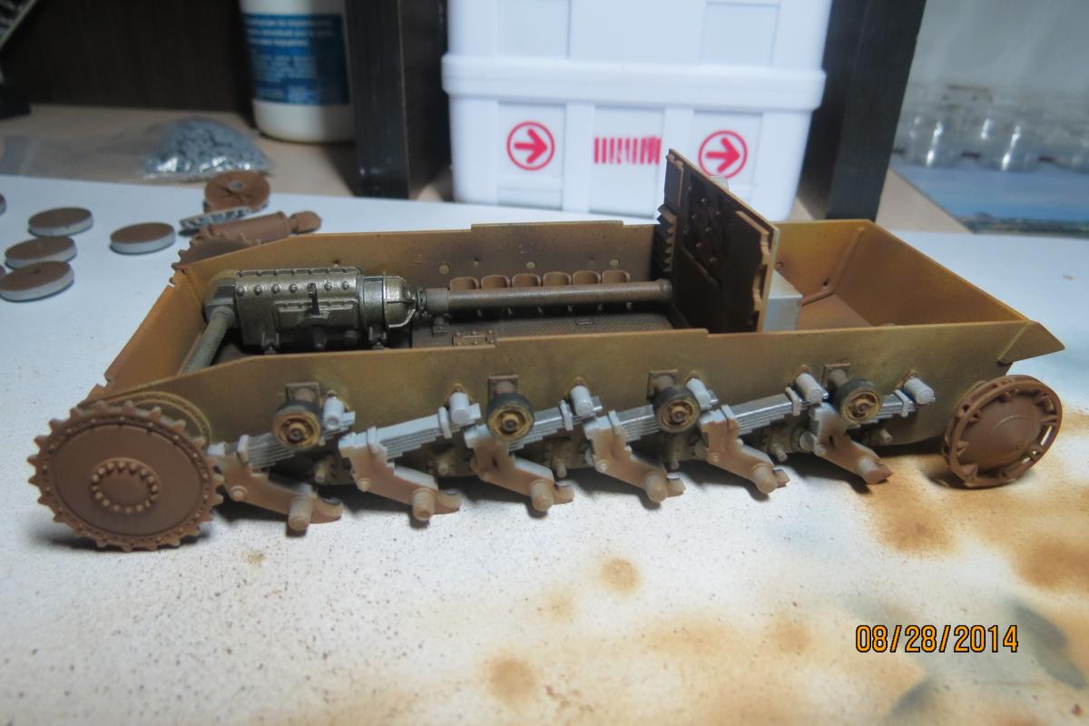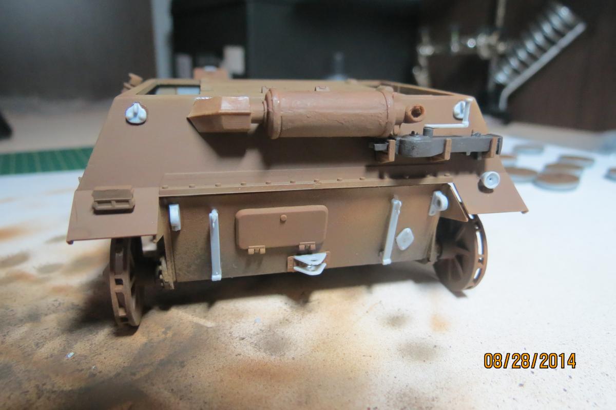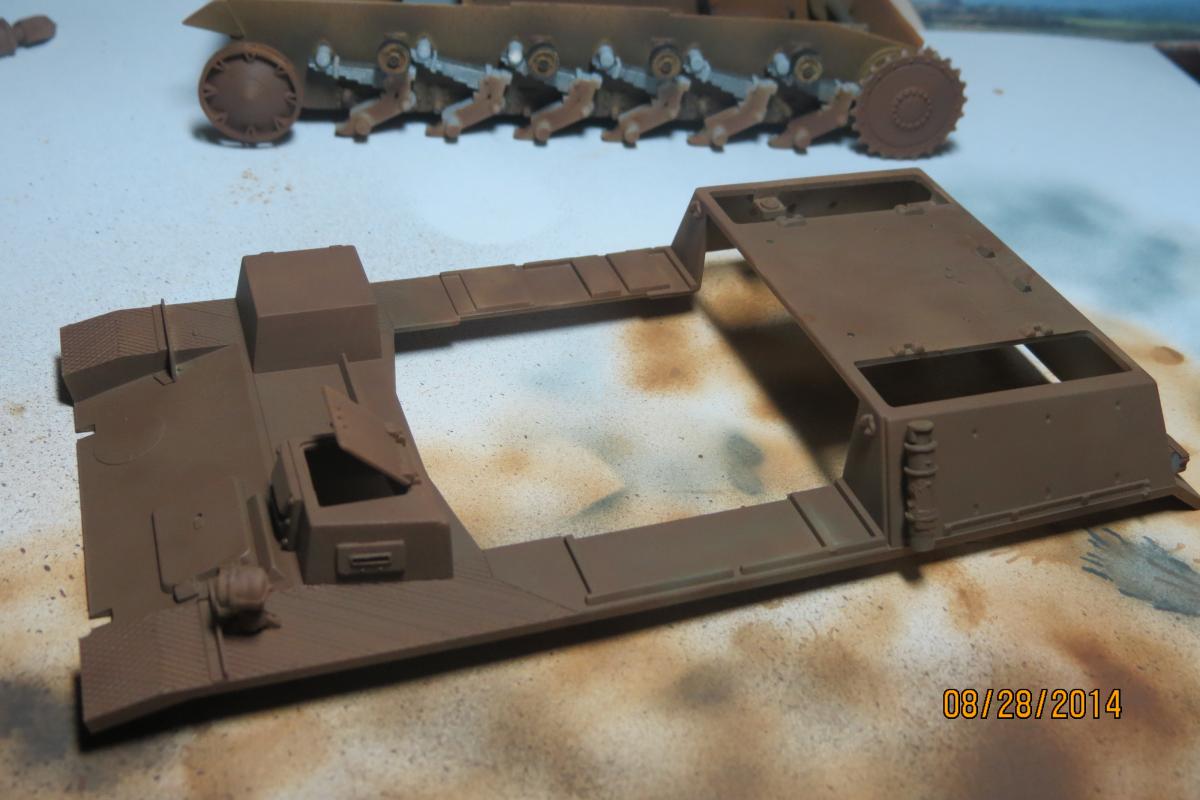 XuHkok Опубликовано: 21 августа, 2014 Игроки 86 публикаций 54 402 боя Поделиться Опубликовано: 21 августа, 2014 Доброго всем дня!Начинающий моделист (опыт всего один год), мне 32 года, работаю директором московской компании, решил поплотнее заняться моделированием.В средствах не стеснен, но мало знаю мест продаж (хороших фототравлений, покрытий для нанесения эффектов и т.д.), если подскажите московский магазин-буду признателен!Дома лежит по меньшей мере коробок 40 разных моделей, вот решил заняться данной моделью.Sturmpanzer IIВыписка из Википедии:15 cm s.I.G.33B Sfl, известная также как Штурмпанцер II (нем. Sturmpanzer II, StPzII), германская самоходная артиллерийская установка периода Второй мировой войны. Относилась к классу самоходных гаубиц, формально классифицировалась как штурмовое орудие.Производство и боевое применениеБыла создана в 1940 году на шасси лёгкого танка Panzerkampfwagen II фирмой «Алкетт». С декабря 1941 по январь 1942 года из линейных танков были переоборудованы 12 серийных САУ этого типа. Все выпущенные Sturmpanzer II в составе 707-й и 708-й рот тяжелых пехотных орудий были приданы Африканскому корпусу и использовались им в 1941—1942 годах, показав себя неудачной конструкцией из-за крайней перегрузки базового шасси. Последние САУ этого типа были потеряны в боях к декабрю 1942 года. Еще инфы:Sturmpanzer II (транслитерируется как Штурмпанцер II, дословно штурмовой танк) — немецкая самоходно-артиллерийская установка (САУ) периода Второй мировой войны, лёгкая по массе. Полное официальное название 15 cm s.IG.33 auf Fahrgestell Panzerkampfwagen II (Sfl.) отражает базу и вооружение САУ — 150-мм тяжёлое пехотное орудие обр. 1933 г. на самоходном лафете на ходовой части лёгкого танка Panzerkampfwagen II. По своему назначению Sturmpanzer I в равной степени являлся самоходной гаубицей и САУ непосредственной поддержки пехоты. Эта боевая машина была создана фирмой «Алькетт» («Alkett») в 1941 году как дальнейшее развитие работ по приданию мобильности тяжёлой полевой артиллерии полкового звена. Предыдущая модель САУ со 150-мм орудием, Sturmpanzer I на базе лёгкого танка Panzerkampfwagen I Ausf.B, обладала рядом весьма существенных недостатков, которые попытались устранить, использовав бо́льшую по габаритам и массе ходовую часть от Panzerkampfwagen II. Последняя подверглась существенным изменениям — корпус удлинили на 60 см и уширили на 32 см, добавили шестой опорный каток на борт и несколько перекомпоновали внутреннее устройство с целью размещения 150-мм орудия и боекомплекта к нему. В отличие от Sturmpanzer I, основное вооружение в виде s.IG.33 уже не устанавливливалось в виде полевого орудия целиком. В декабре 1941-го и январе 1942-го года «Алькетт» переоборудовала 12 линейных танков Panzerkampfwagen II в САУ Sturmpanzer II. Все они были отправлены на североафриканский театр военных действий.Как и предшественник, САУ Sturmpanzer II оказалась малоудачной конструкцией. Их служба в Африканском корпусе выявила крайнюю перегрузку ходовой части, связанную с ней низкую надёжность и постоянную потребность в ремонте. Бесспорным достоинством была высокая огневая мощь машины, но для боевых действий в Северной Африке с быстрыми перемещениями частей на больши́е расстояния самоходка была не приспособлена. Недостаточным был и возимый боекомплект в 10 артиллерийских выстрелов. В декабре 1942 года Вермахтом был потерян последний Sturmpanzer II, ни одной САУ этого типа до настоящего времени не сохранилось. 2 Ссылка на комме
