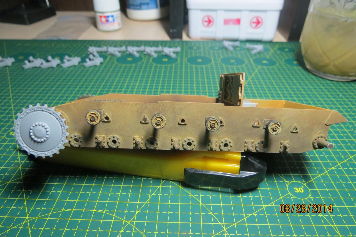 XuHkok Опубликовано: 31 августа, 2014 Игроки 86 публикаций 54 402 боя Автор Поделиться Опубликовано: 31 августа, 2014 31 Авг 2014 - 10:08 пользователь gralexxl сказал:Не очень понятно про окраску, модель окрашивается частями? Кистью? И что за прибор для обточки?Гравировальная бормашина DREMEL 3000 (3000-1/25) + 25 насадок использую насадки для более точной подгонки (дорого конечно, но стоит того)а крашу с помощью аэрографа, но считаю это пока просто базовой окраской, чтоб потом не мучаться задувать в труднодоступные места, так что слоев еще несколько будет (не конечный вариант), а кистью мелочи довожу до нужного цвета))) 31 Авг 2014 - 11:07 пользователь OcCre сказал: Интересный подход к сборке и окраскеА почему люки и обвесы из пластика другого цвета? Так в наборе идет?Про АРКу - с одной стороны верно, но с другой мне интересно ее собирать именно из-за ее траблов http://cdn-frm-eu.wargaming.net/4.2/style_emoticons/wot/Smile_Default.gif все серого цвета) просто задул раньше верхнюю часть корпуса базой, а люки еще в обработке были)))"Интересный подход к сборке и окраске" из-за отсутствия опыта))) можно сказать "первая модель" )))) Установил катки, немного подкрасил.Самое главное за 3 дня!!! Нашел БОЛЬШУЮ ЛАВКУ по моделям, денег с собой было немного, но закупился малость)))))зато теперь каждая модель будет с травлением и металлическими траками !!!! Ссылка на комментарий
