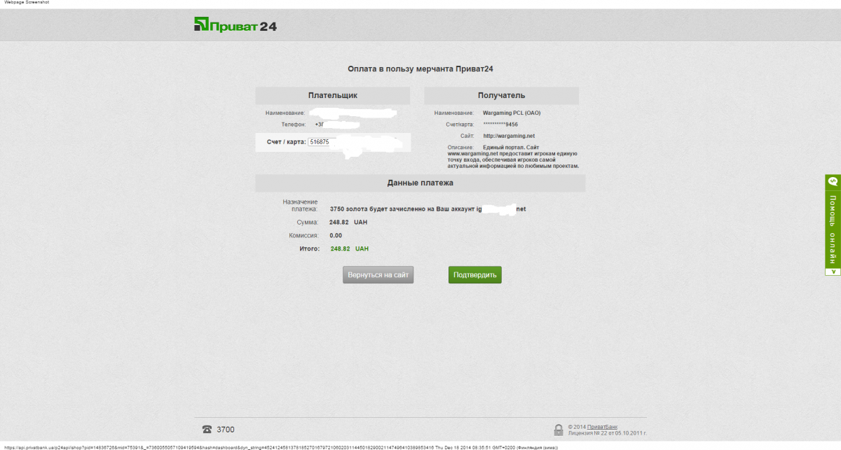 urpa_mepTBa_cnc_apTe Опубликовано: 18 декабря, 2014 Игроки 78 публикаций 42 009 боёв Автор Поделиться Опубликовано: 18 декабря, 2014 18 Дек 2014 - 08:49 пользователь HALIF_UMAR сказал:Может из-за того, что операции по зачислению золота происходят лишь на серверах WG? А в платежных сервисах, может быть, при создании продаваемого товара указывается и описание. Поэтому, факт включения акции не отражается на описаниях в платежных сервисах, может серверу WG пофиг что там в ПриватБанке написано при описании товара. WG увидит нужную сумму и зачислит 7500. Хотя может я и ошибаюсь. P.S: Разные платежные сервисы работают по разному, но в общем суть одинакова. Клиент (в данном случае WG), регистрирует себя у сервиса по приему платежей (в данном случае ПриватБанк), и добавляет там свой товар, указав описание и цену товара. Клиент создает на своем сайте ссылку на товар, и пересылает своего покупателя на товар в сервисе приема платежей. Тот, получив платеж, сообщает серверу клиента, что получен платеж на энную сумму от такого то пользователя. И WG уже зачисляет нужное количества золота. Но тут WG видит что акция, в 50%, и увеличивает зачисляемый размер золота. Наверно все так и было)) Думаю моя мысль ясна) ето риск может пройти а может и нет... Ссылка на комментарий