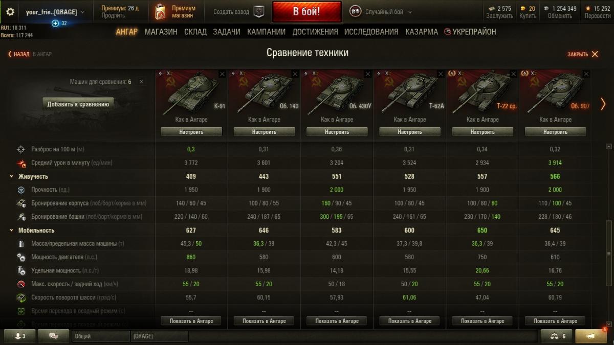 что касается советских ст, то подскажу тебе один простой лайфхак, сам до него наверное не догадаешься. можно сделать так (скрины ниже), и сравнить по ттх, какой же танк будет лучше. там видно, что 907 уступает только по дпму к-91 и по броне об430у. остальные параметры примерно одинаковые. но у к-91 нет брони, у 430у нет стабилизации и точности. Учитывая, что 907 имеет хороший дпм, стабилизацию и толстые борта, и довольно неплохой лоб, делает его лучшим на своем уровне из ст. а еще детальную информацию по броне можно посмотреть, но тебе еще рано, это уже другой уровень :D