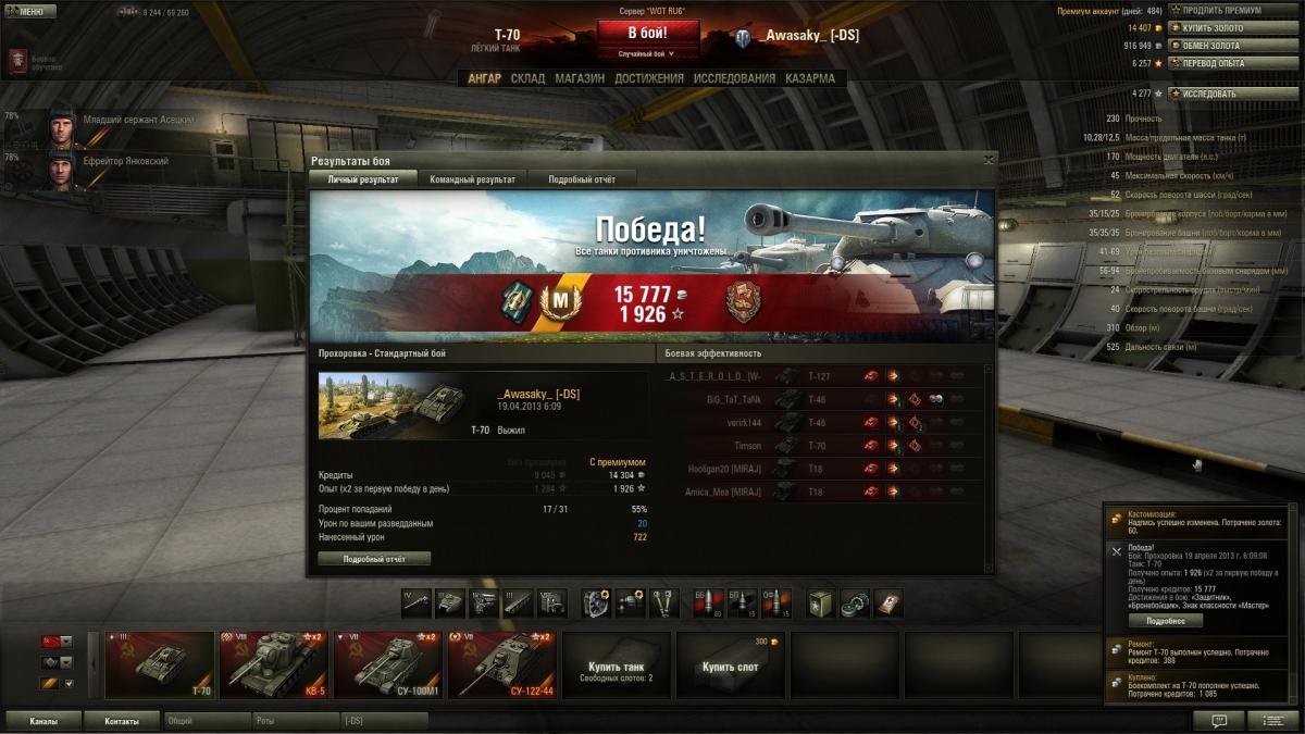 Получено опыта: 1 926 (x2 за первую победу в день)