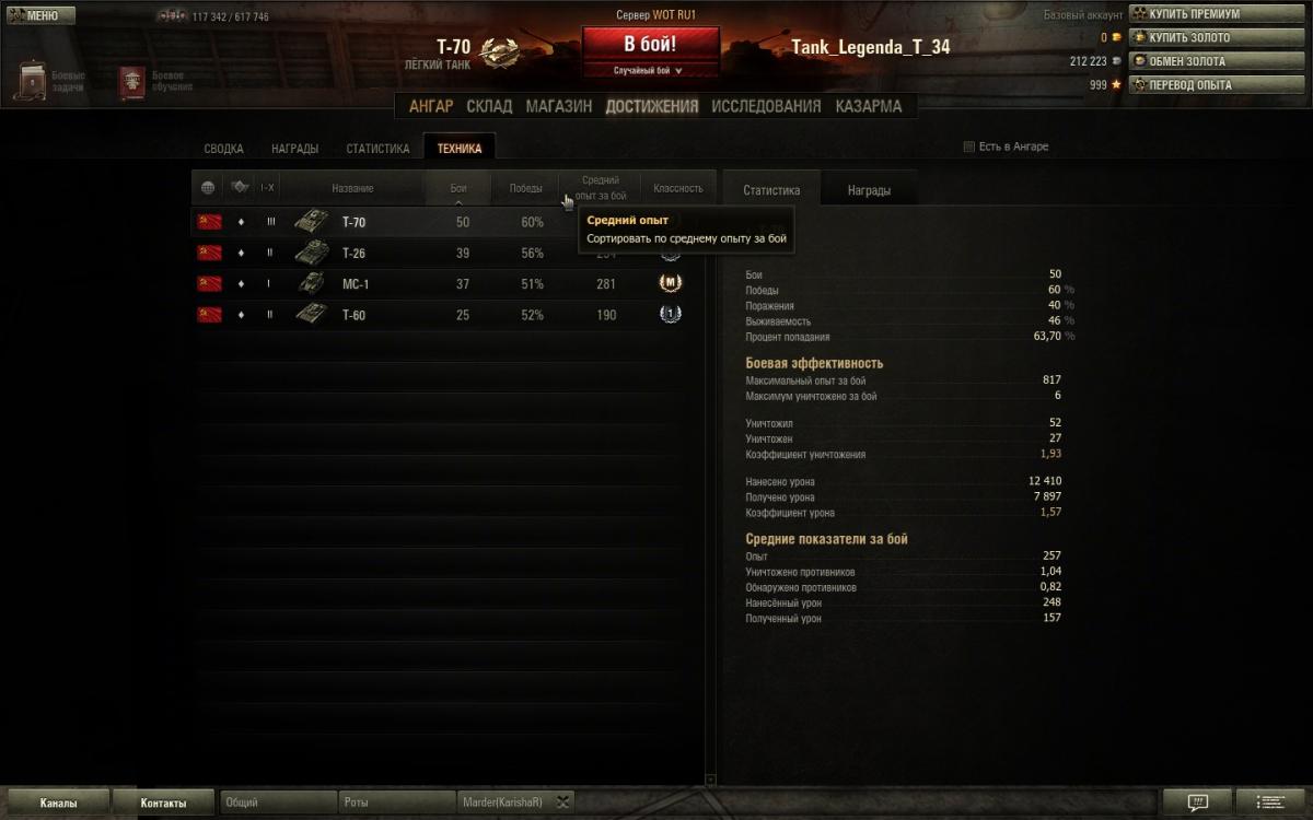 моя статистика на данный момент по т-70